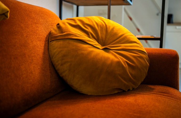 Dieses Ferienhaus für sechs Personen ist eine stilvoll gestaltete Split-Level-Wohnung. Im warm eingerichteten Innenraum erwartet Sie ein großzügiger Wohnbereich mit einer Sitzecke, einem Essbereich und einer offenen Küche. An kälteren Tagen sorgt der Holzofen für zusätzliche Gemütlichkeit und Wärme. An den Flur grenzen zwei Schlafzimmer, ein Badezimmer und eine Toilette. Das dritte Schlafzimmer erreichen Sie über eine kleine Treppe vom Wohnbereich aus.