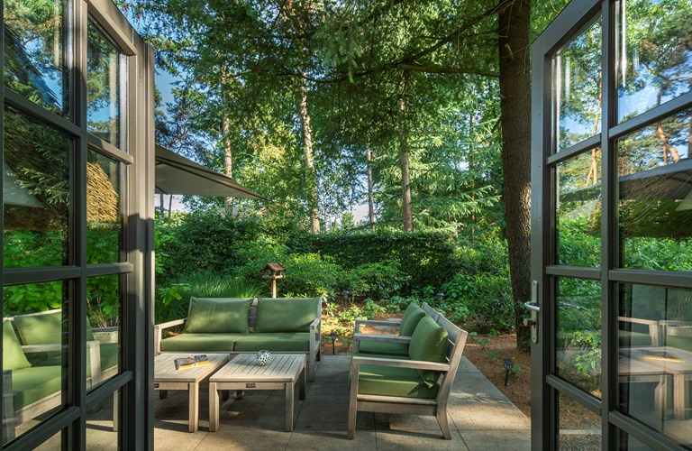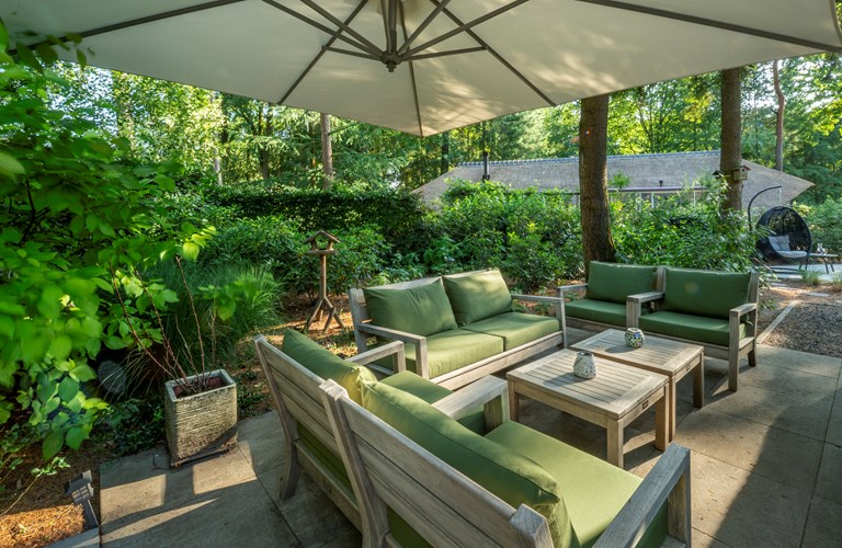 An schönen Tagen lädt die Terrasse dazu ein, die Natur zu genießen, aber natürlich auch Frühstück, Mittagessen, Getränke und/oder Abendessen im Freien zu erleben. Die Terrasse ist durch die Flügeltüren vom Wohnzimmer aus zugänglich.