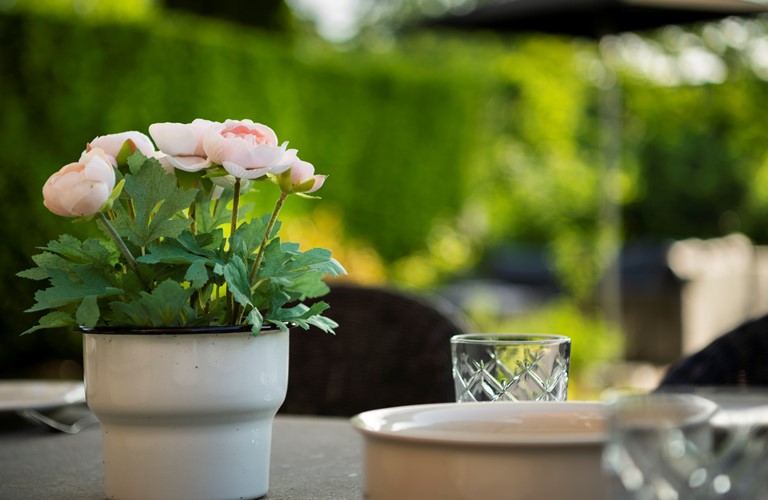 Dit jaar weer terug dus, tot onze grote teleurstelling is de boom er niet meer, op enkele foto’s op de verhuursite staat die er nog wel… De tuin is evengoed prachtig, en een stuk netter dan 2 jaar geleden. Wel moesten we het met 6 personen doen met een klein parasolletjes waaronder je amper met 2 in de schaduw kunt zitten, ik zou zeggen investeer in een goede grote parasol en een verplaatsbare voet, de voet bij de eettafel is kapot, onbruikbaar, en misschien kussens voor de tuinstoelen bij de eettafel.