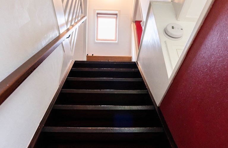 Das obere Stockwerk ist über eine überaus steile Treppe zu erreichen. Für ältere Personen oder kleine Kinder nicht sehr