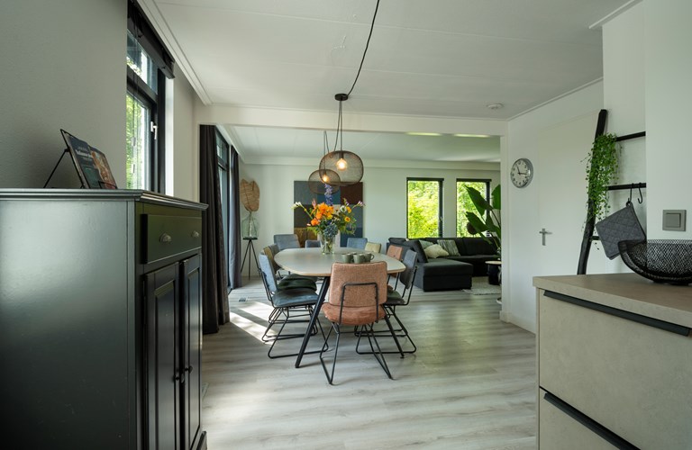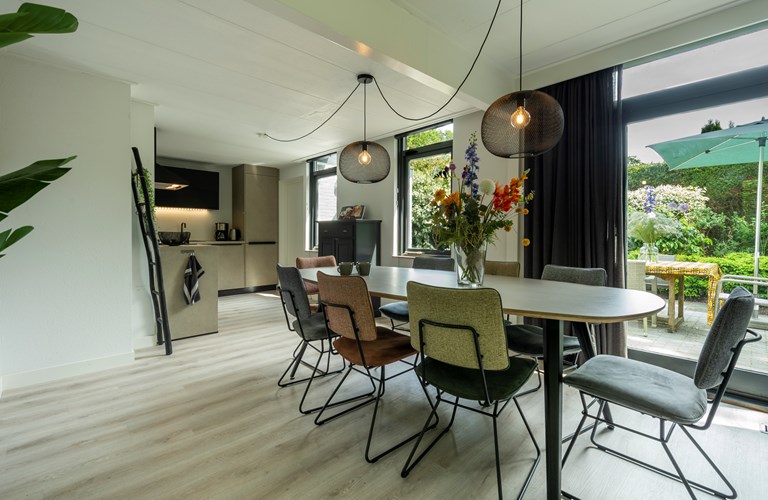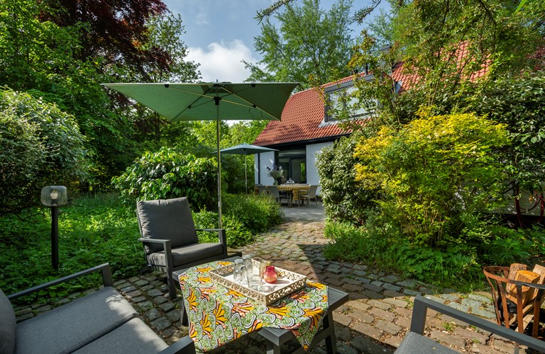 Dit huis ligt heel mooi tussen de bomen, op loopafstand van de duinen en strand.