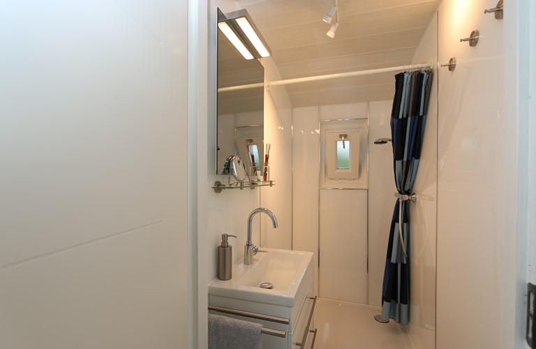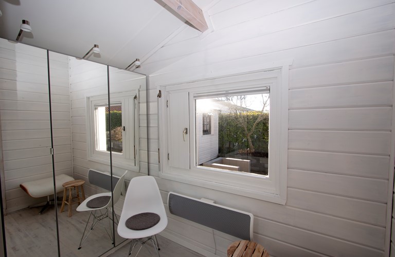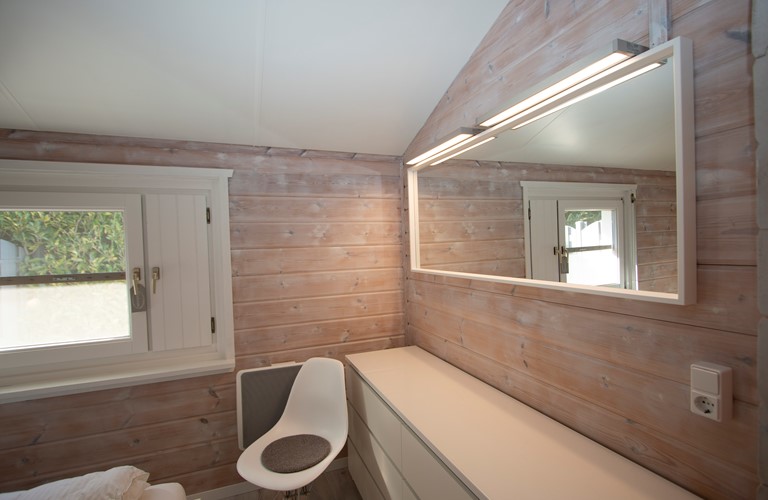 Das moderne Haus ist von allen Annehmlichkeiten vorsehen und hat ein luxuriös eingerichtetes Wohnzimmer mit gemütlichem Holzkamin und Flatscreen Kabelfernsehen. Die offene Küche ist komplett ausgestattet und hat einen Esstisch, von wo Sie eine Aussicht auf den Garten haben. Die beiden Schlafzimmer verfügen über Boxspringbetten und ein extra Zimmer mit viel Aufbewahrungsmöglichkeiten ist auch vorhanden. Das Badezimmer verfügt über eine Dusche und Wachbecken. Eine separate Toilette finden Sie auch. Der Gefrierschrank und die Waschmaschine finden Sie im Nebenraum, wo Sie auch Ihre Strandsachen ablegen können.