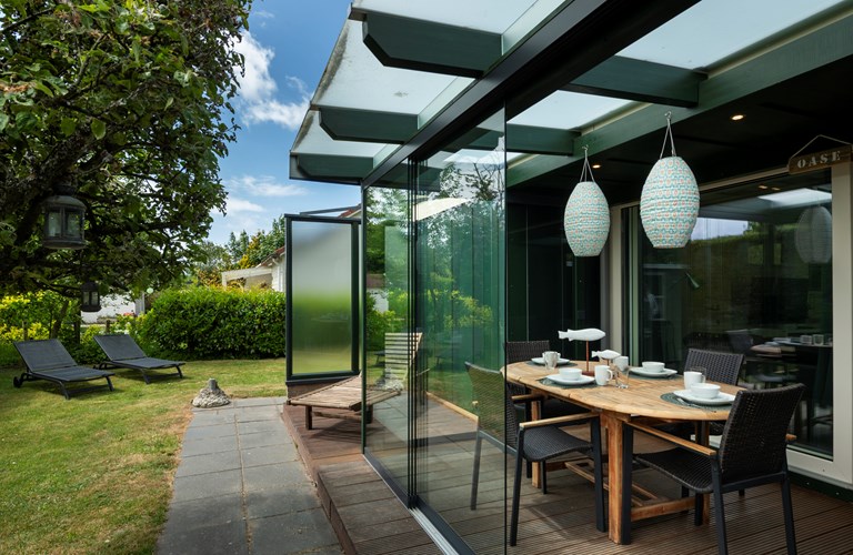 Ein gemütliches Ferienhaus, das für 5 geeignet ist. Die offenen Küche ist von allen Annehmlichkeiten versehen. Im Sommer können Sie herrlich die Türe zum Garten hin beim Kochen offen stehen lassen und bereiten ein zauberhaftes Dinner vor, welches Sie dann unter der teils überdeckten Terrasse genießen. Da die Überdachung Anfang 2025 mit Glasschiebetüren ausgestattet wird, können Sie auch im Frühling und Herbst „draußen“ sitzen. Besonders bei Sonnenschein wird dieser Wintergarten schnell zu einem angenehmen Aufenthaltsort. Was gibt es besseres als zusammen im Garten mit der ganzen Familie zu essen und entspannen?