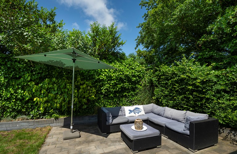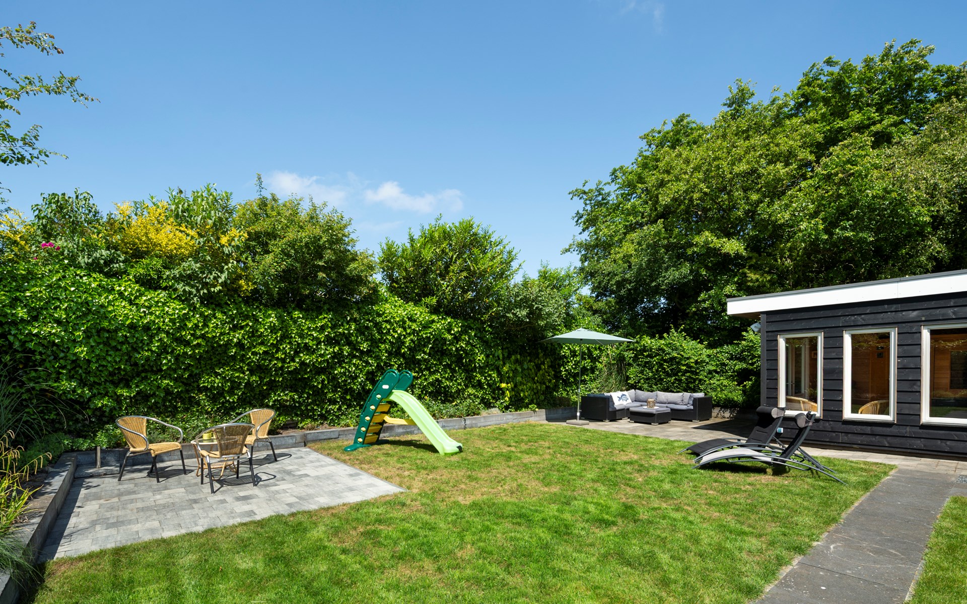 Der großzügige Garten verfügt über zwei Terrassen mit tollen Gartenmöbeln und einer herrlichen Lounge, wo Sie von der Sonne und der Musik die aus den Lautsprechern kommt genießen können. Im hinteren Teil des Gartens befindet sich noch ein separater Raum, mit einer Infrarotsauna auch hier können Sie herrlich entspannen und den Tag ausklingen lassen. Ebenfalls im Garten anwesend ist eine Außendusche. Weiter steht Ihnen eine kleine Terrasse im Vorgarten zur Verfügung, zwei Parkplätze und ein Schuppen.