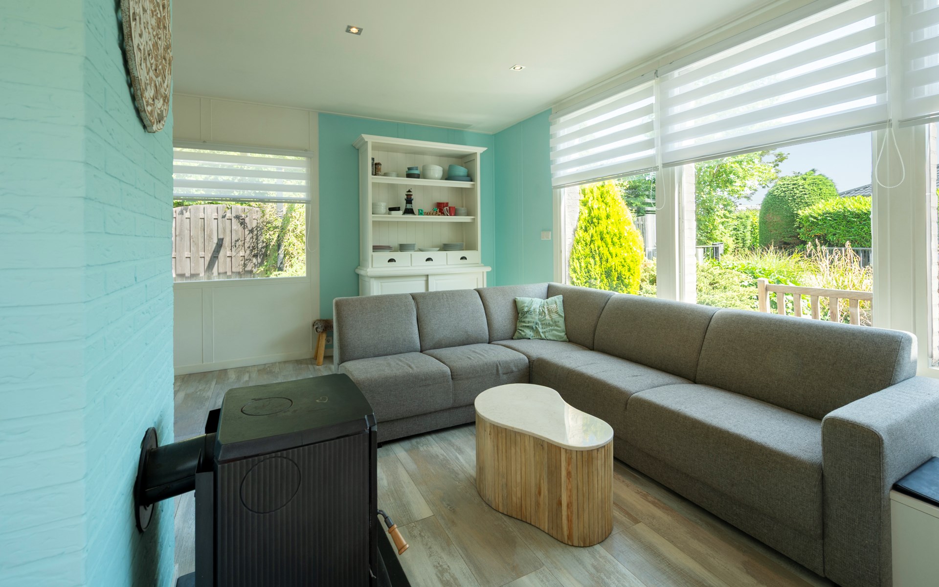 Das Haus hat ein gemütliches Wohnzimmer mit einem wundervollen Holzkamin und modernen Apparaturen wie Netflix, Soundsystem und LED-Verdunklungslampen die für eine tolle Atmosphäre sorgen. Das Wohnzimmer grenzt an die moderne Küche mit Spülmaschine. Es befinden sich zwei großzügige Schlafzimmer und ein Kinderzimmer mit Etagenbett im Haus. Beide Schlafzimmer verfügen über eine Klimaanlage. Weiter befindet sich noch ein Badezimmer mit Dusche und Toilette im Haus.