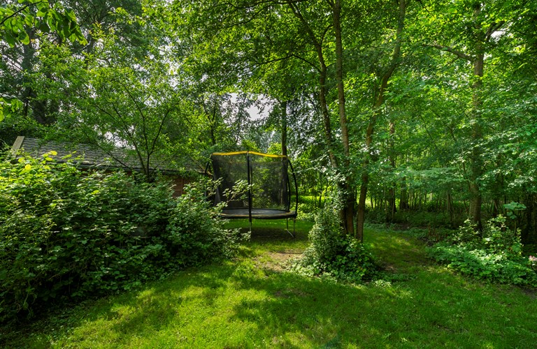 Vom Wohnzimmer/Küche aus gibt es drei verschiedene Türen, durch die Sie in den Garten gelangen können. An verschiedenen Stellen rund um das Haus gibt es Terrassen, auf denen Sie gemütlich gemeinsam essen oder bei schönem Wetter die Sonne genießen können. Der Garten verfügt über eine große Rasenfläche und ein Trampolin, auf dem Kinder spielen können. Aufgrund der Lage und der fehlenden Umzäunung des Gartens laufen regelmäßig Hirsche und Kaninchen hindurch. Ihre Haustiere sind hier ebenfalls herzlich willkommen.