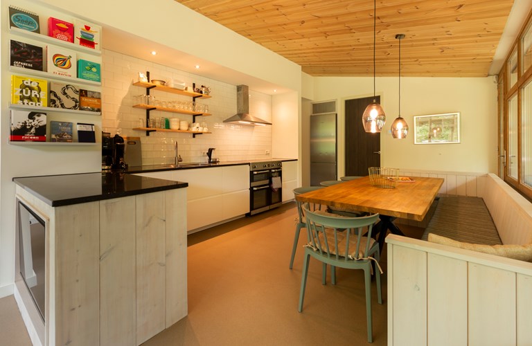 Das freistehende Ferienhaus ist einzigartig zwischen grünen Wäldern eingebettet. Das Haus verfügt über ein gemütliches Wohnzimmer mit einem Kamin und Blick auf den sehr geräumigen Garten und den dahinterliegenden Wald. Angrenzend befindet sich der Essbereich mit offener Küche, die mit allen Annehmlichkeiten ausgestattet ist. Neben dem Essbereich befindet sich der Hauswirtschaftsraum, in dem ausreichend Platz zum Verstauen vorhanden ist. Für die Kinder gibt es unter der Treppe im Flur eine herrliche Ecke, in der sie Spiele spielen oder ein Buch lesen können.