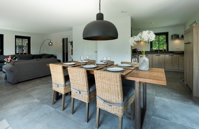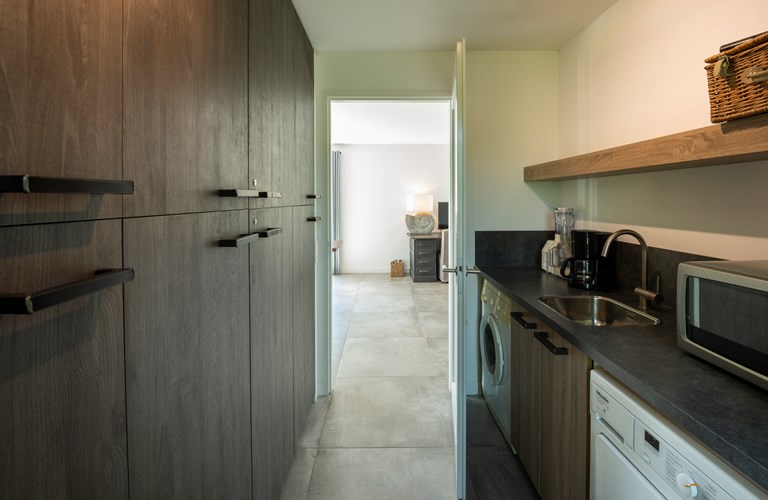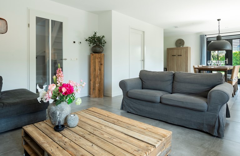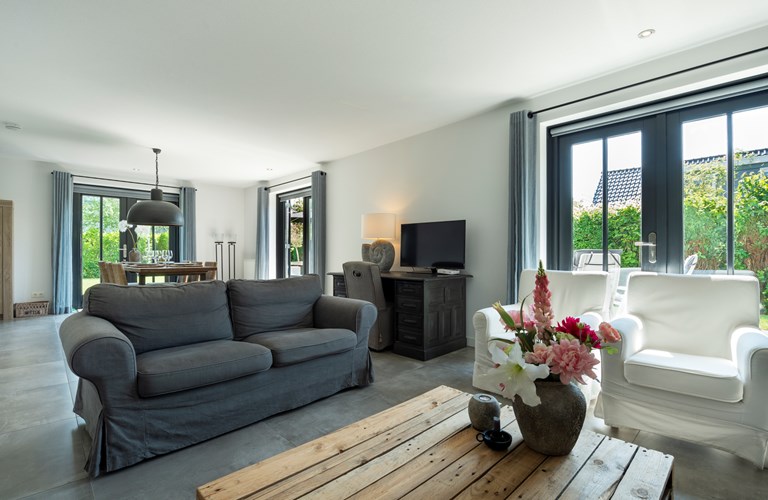 In dieser effizienten Villa werden alle Wünsche wahr, es befindet sich u.a. ein großes Wohnzimmer mit Flügeltüren und geselliger Sitzecke, drei Schlafzimmer, ein anspruchsvolles Badezimmer mit Badewanne und Dusche, eine komplette Küche sowie ein Abstellraum mit Waschmaschine und Wäschetrockner. An den beiden Sonnenseiten des Hauses befindet sich eine große Terrasse. Somit sind alle Voraussetzungen für einen komfortablen und sorgenfreien Urlaub vorhanden. Die Villa ist sehr gemütlich und modern gehalten.