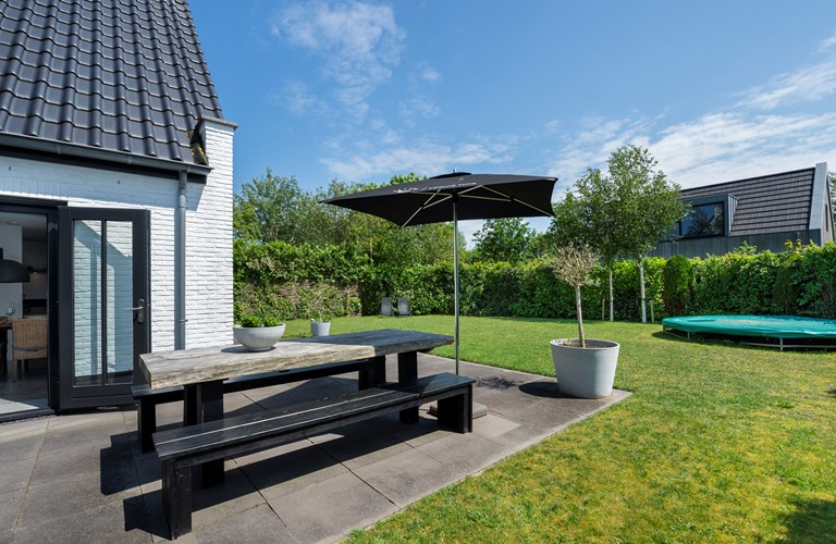 Der sehr großzügige Garten hat Südlage. Hier gibt es eine Trampoline und für die Kinder eine große Wiese zum Spielen. Die Terrasse befinden sich an zwei Seiten des Hauses, hier können Sie in der Morgensonne herrlich wach werden und den ganzen Tag über von einem Buch und einem guten Glas Wein genießen.