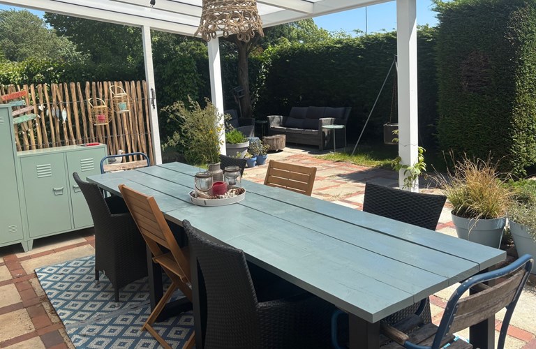 Der Garten war gut eingezäunt(für uns als Hundehalter sehr wichtig), vor allem im hinteren Bereich aber sehr ungepflegt. Es gab mehrere Sitzplätze, so dass man immer zwischen Schatten und Sonne wählen konnte. Top! Sehr gut gefallen hat uns auch die überdachte Terrasse und die Gartenhütte zum Abstellen unserer Fahrräder. Ebenfalls Top!