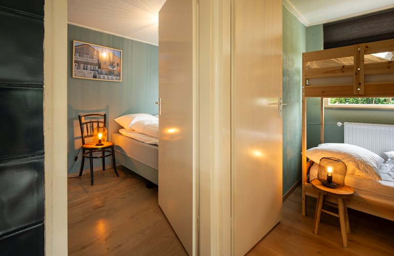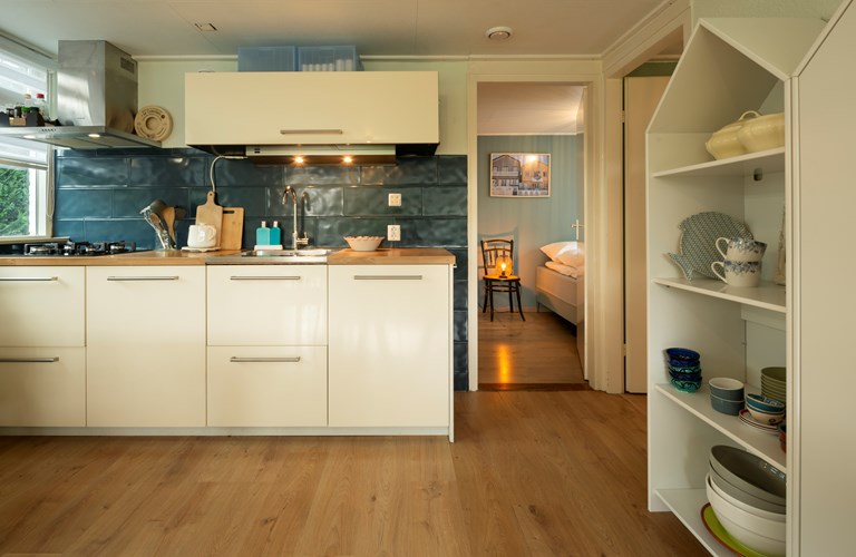 Die Ferienbungalow "Haus am Meer" ist ein gemütlich und geschmackvoll eingerichtetes Haus mit einem gemütlichen offenen Wohn- und Esszimmer. Die großen Fenster sorgen für einen ungehinderten Blick auf den Garten. Die Küche ist klein aber fein und mit allen Annehmlichkeiten ausgestattet, wie einem Kühlschrank mit Gefrierfach, einer Kombi-Ofen/Mikrowelle und einem Geschirrspüler. Der Bungalow verfügt über zwei helle und geräumige Schlafzimmer, eines davon mit Etagenbett. Über das Hauptschlafzimmer mit Doppelbett gelangen Sie zum Badezimmer mit Dusche, WC, Waschbecken und Waschmaschine.