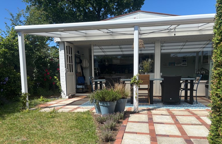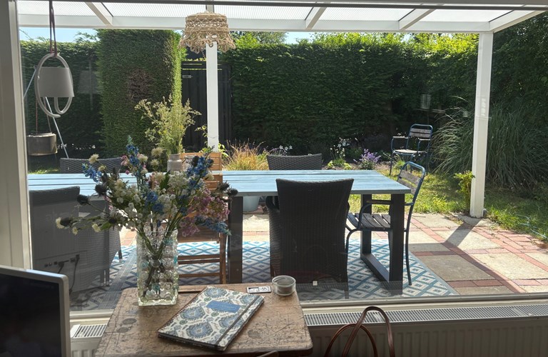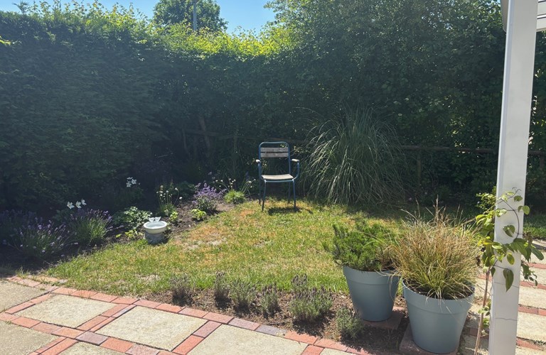 Der Garten liegt nach Süden und bietet verschiedene Terrassen, auf denen Sie die Sonne genießen können. Es gibt eine große Veranda am Haus, auf der Sie sich an kühleren Sommerabenden gemütlich entspannen können. Hier fühlen Sie sich wie alleine auf der Welt, denn der Garten ist sehr geschützt und bietet viel Privatsphäre.