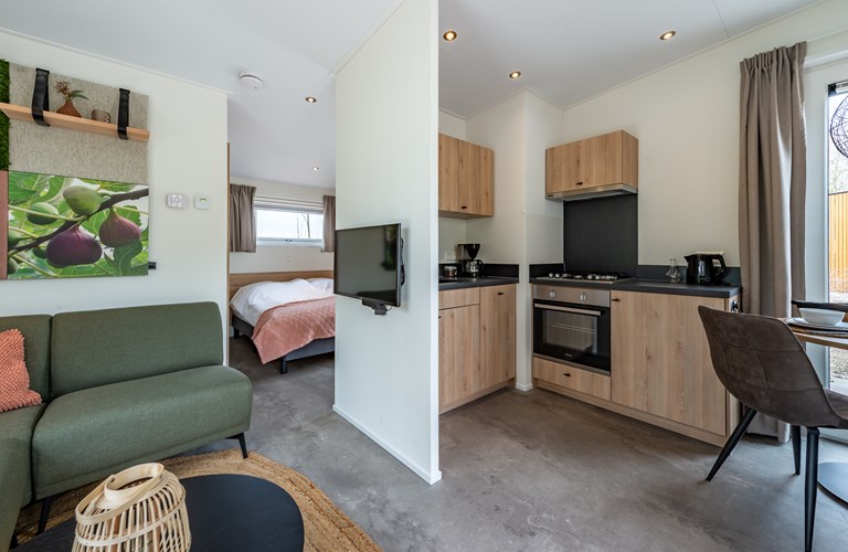 In a natural environment you will automatically come to rest. Welcome to 2 person lodge 'de Vijg' on our beautiful farm located directly on National Park Oosterschelde. Here you wake up with the singing of birds in the background. Do you hear the sea? Nature is all around and yours to discover, from the lodge you are right in the middle of it. The brand new wooden lodge has a cozy living room with large windows so you can spot the many birds all around. And if you are patient the deer will pass by.