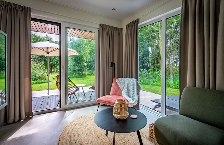 The kitchen is complete and equipped with dishwasher and oven. Next to the double bedroom is a spacious bathroom with sink, toilet and shower. From your own garden you can walk straight into the 4-hectare nature reserve surrounded by various regional plants such as hawthorns, buckthorns and a real hazel forest. Here hidden in the greenery is the wood-fired sauna for complete relaxation. To experience the ultimate tranquility, Steurshoeve focuses only on adult guests.
