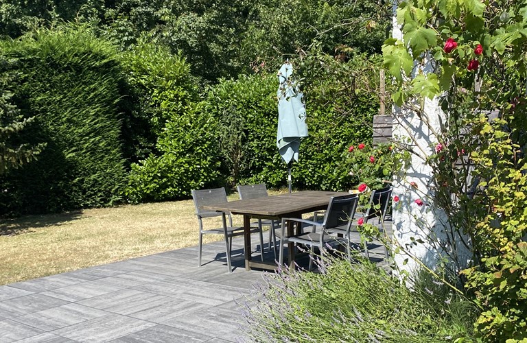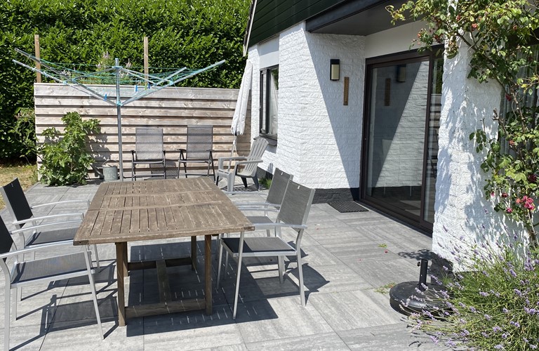 De garden faces south and offers lots of privacy. On the terrace with the outdoor fireplace, which is placed on the terrace during the summer months and can be accessed directly from the living room, you can enjoy outdoor living without worries. The enclosed garden with a trampoline and sandpit make your stay also very pleasant with children and your beloved dog. Moreover, the park offers playing areas. You’ll find a parking at the house.