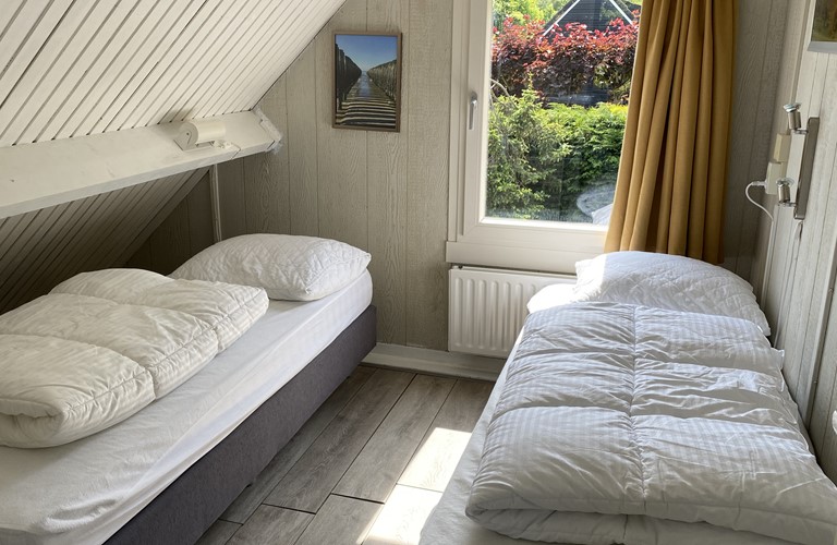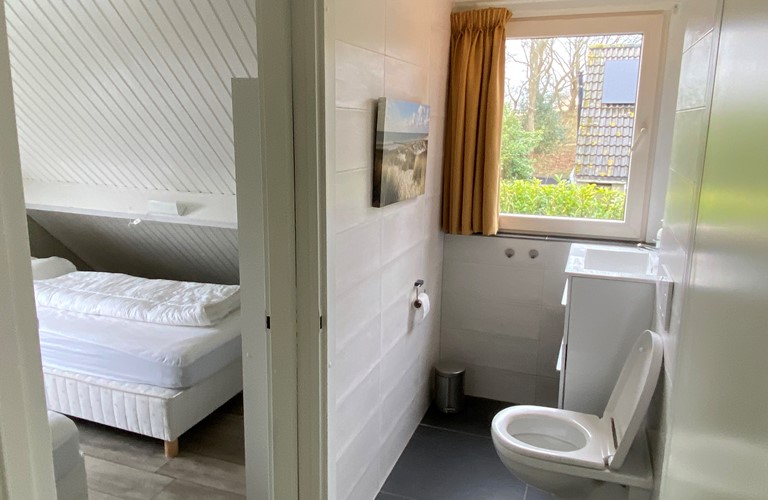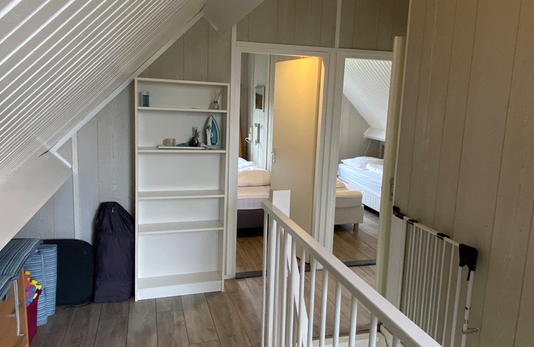 This stylish house has a bright, cosy living room with an adjacent dining area and a modern, well-equipped kitchen. The ground floor offers a bathroom with a walk-in shower and toilet. De first floor is provided with three spacious double bedrooms, with boxsprings, a separate toilet and a landing with a playing area for children and a stair gate.