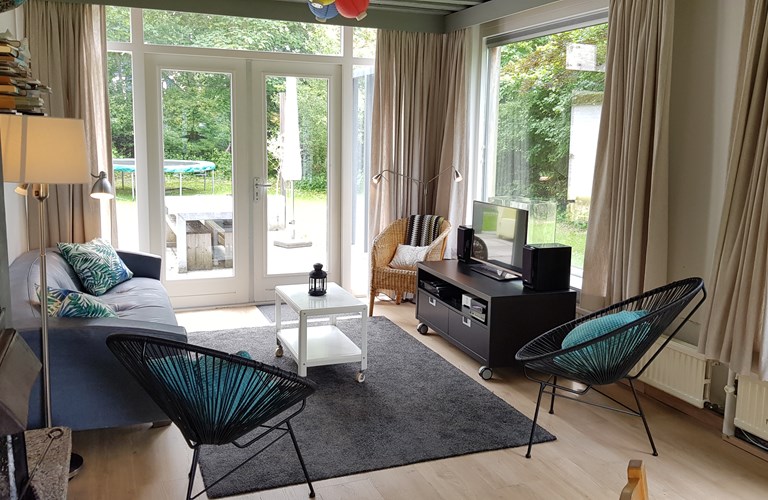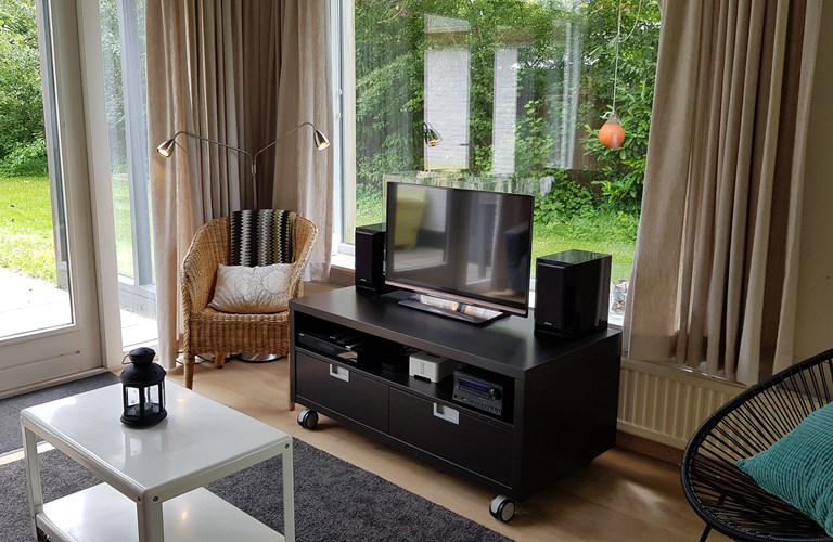 This comfortable, cosy family home is styled in a nice way and has an atmospheric wood burner. The house has an open kitchen with adjacent dining area. From the living room, you can directly enter the terrace through the sliding doors. Whenever the weather is less beautiful, you can enjoy the SMART-tv or the Apple-tv. There are two children's bedrooms and 1 bedroom for adults, a bathroom with walk-in shower and a separate toilet present.