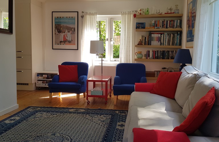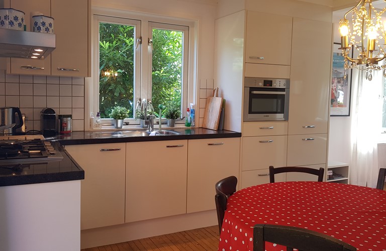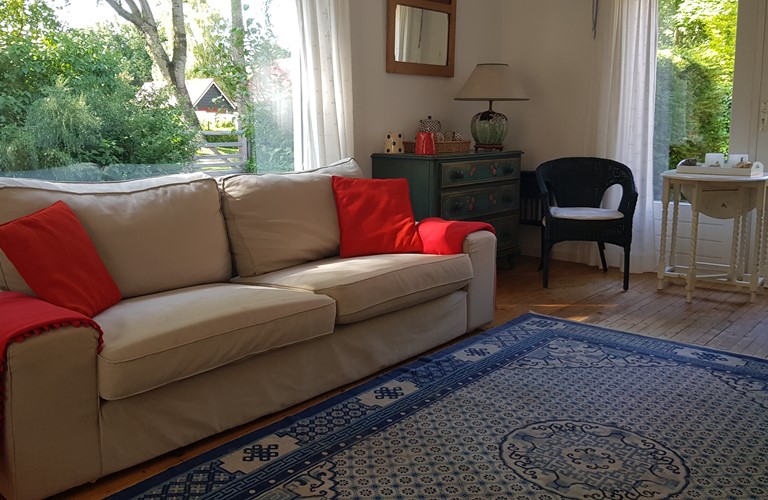 The house has a bright living room with a spacious, fully-equipped open kitchen with dining table. From the kitchen you’ll have wonderful views over the garden and easily access the outdoors. There are three bedrooms present at the house. The bathroom with shower and toilet is located on the ground floor.