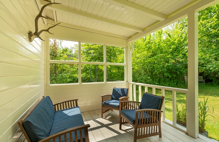 Die überdachte Veranda ist ein Traum, der Garten ist schön angelegt, Hund kann hier frei laufen,