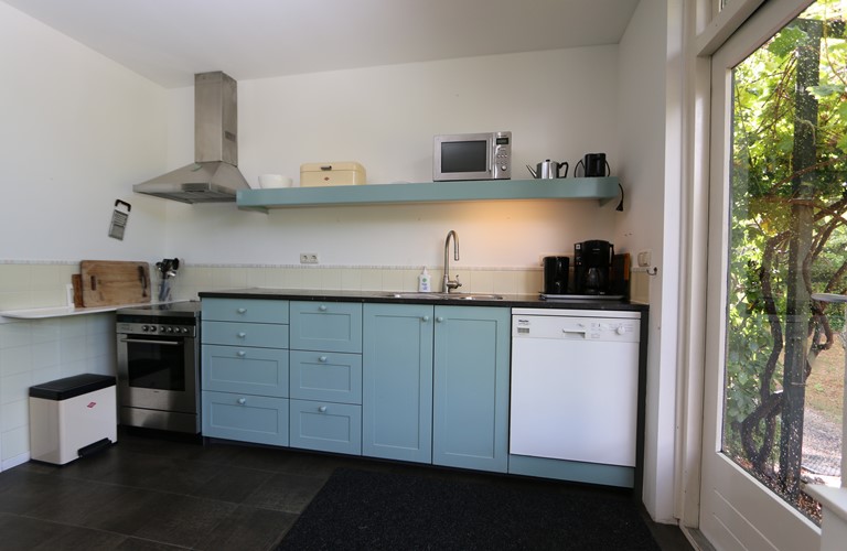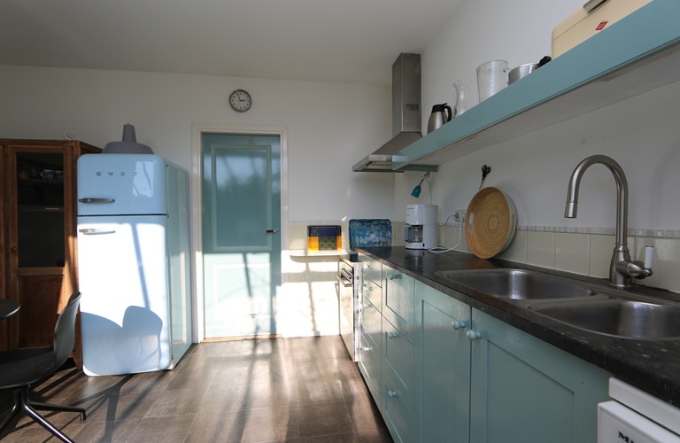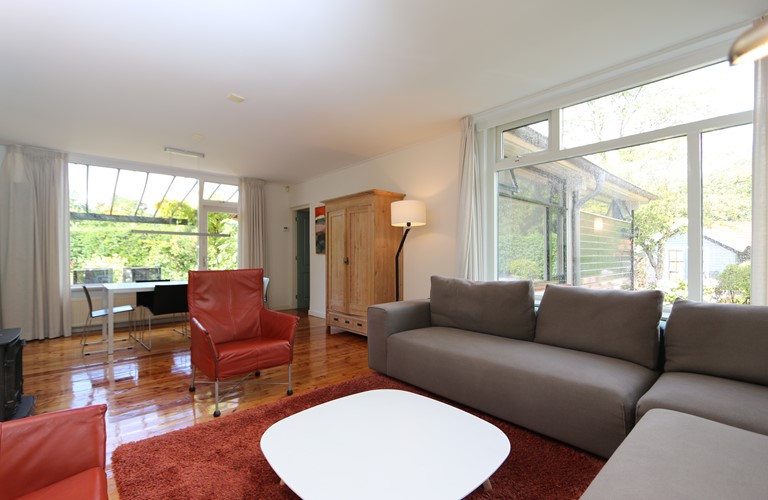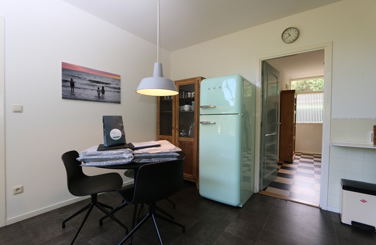 The ground floor bungalow has a cosy and bright living room with an atmospheric woodstove, an adjacent dining area and a modern well-equipped kitchen. You’ll find a very spacious master bedroom and two extra bedrooms. Besides, there also is a large bathroom with a bathtub and a shower.