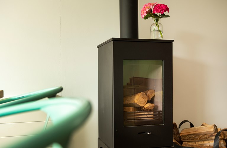Fijne loungebank. De 2e bank is helaas wat minder. Houtkachel maakt het geheel af.