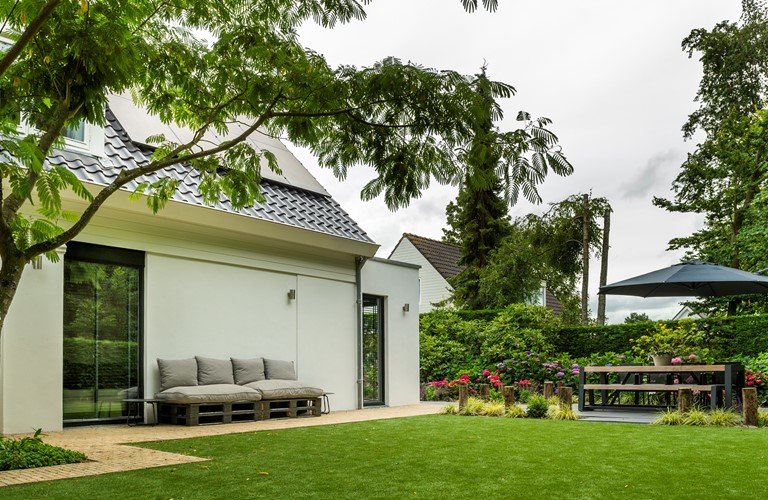 During the summer months, you can enjoy yourself outside. De spacious and sunny garden has an ample terrace that can be completely enclosed which offers you a lot of privacy. The estate offers two parking spots.