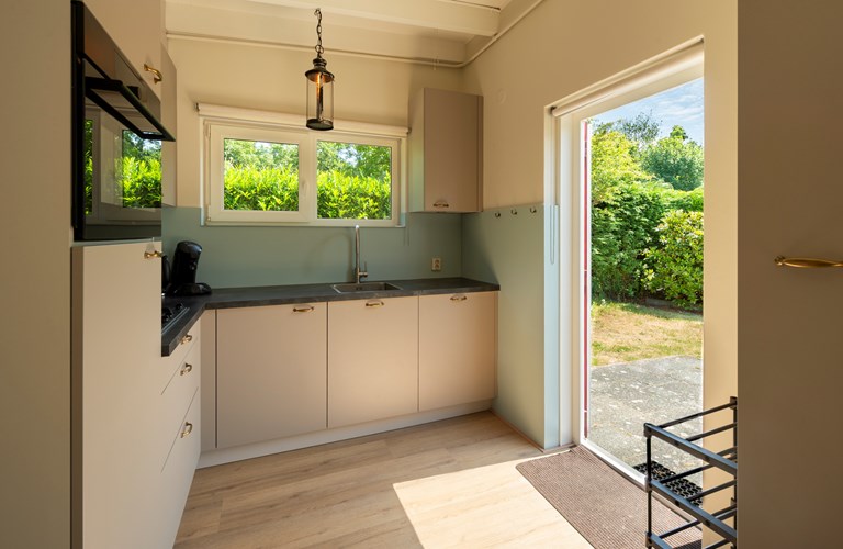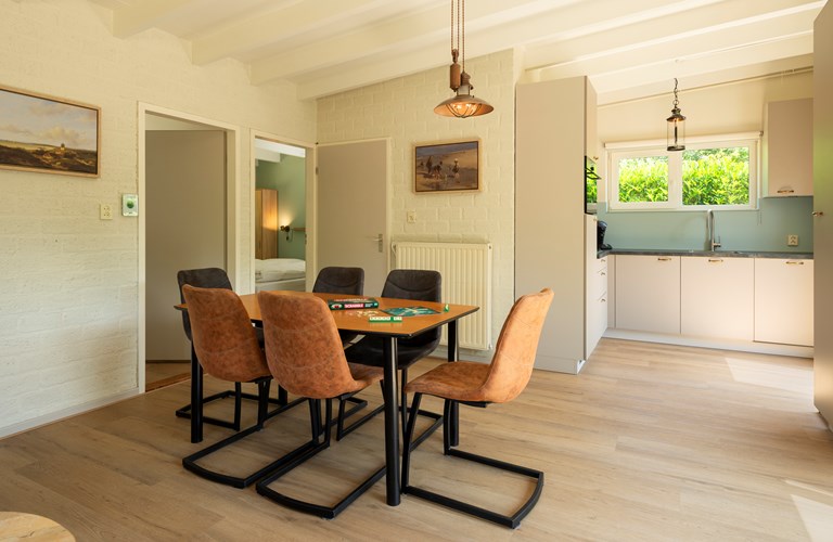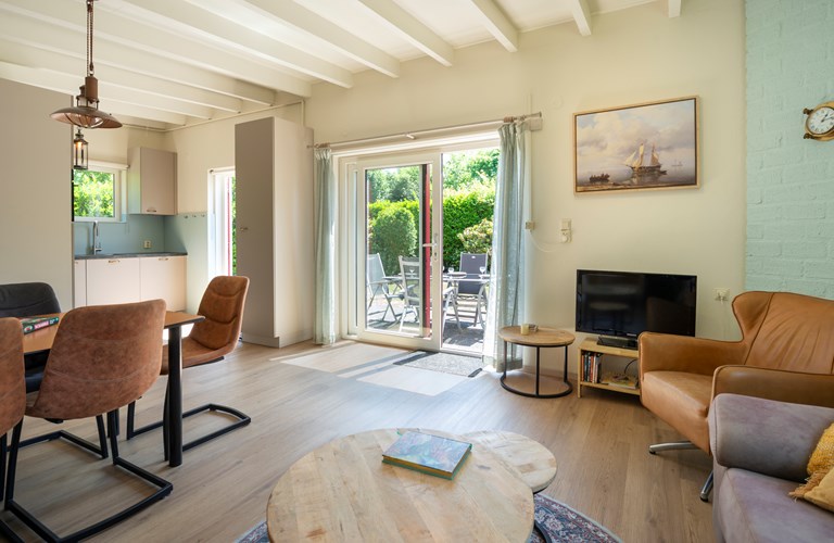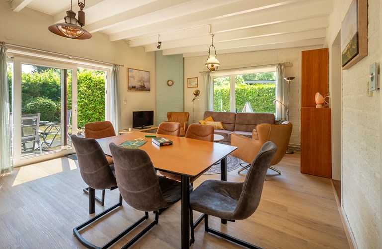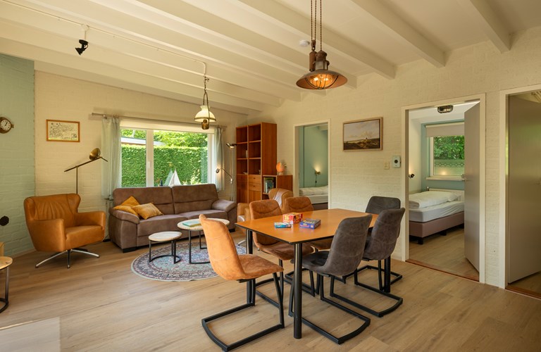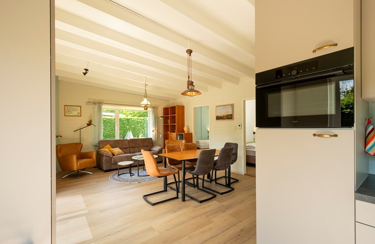 The house "De Beuk" features a spacious, stylish living area (with games and puzzles in the cupboard) for relaxing and dining, as well as a complete, modern, and renovated open kitchen. There are three beautiful bedrooms, accommodating a total of 5 people, and a bathroom with a shower and toilet. Wi-Fi and a television with many channels from both home and abroad are also available.
