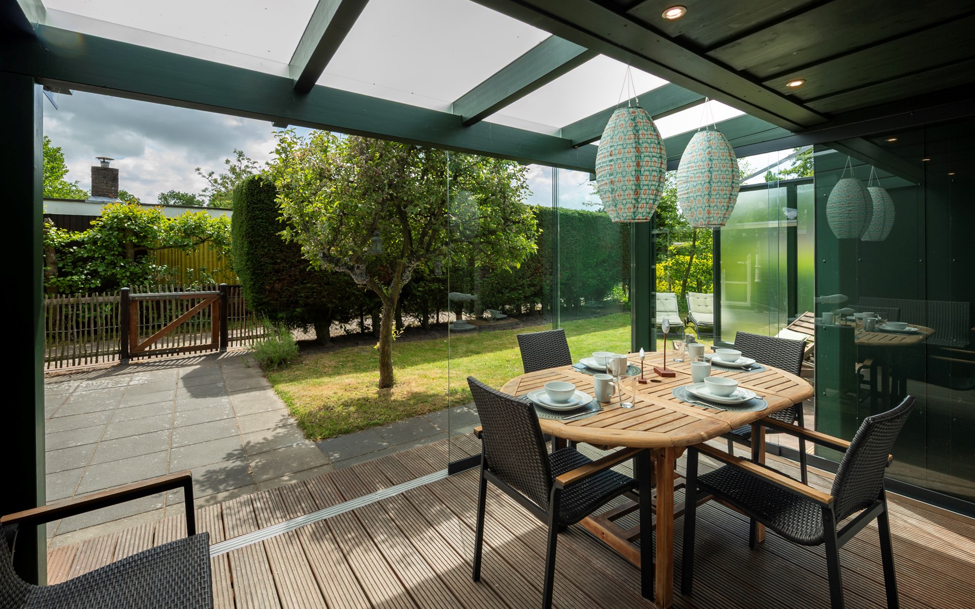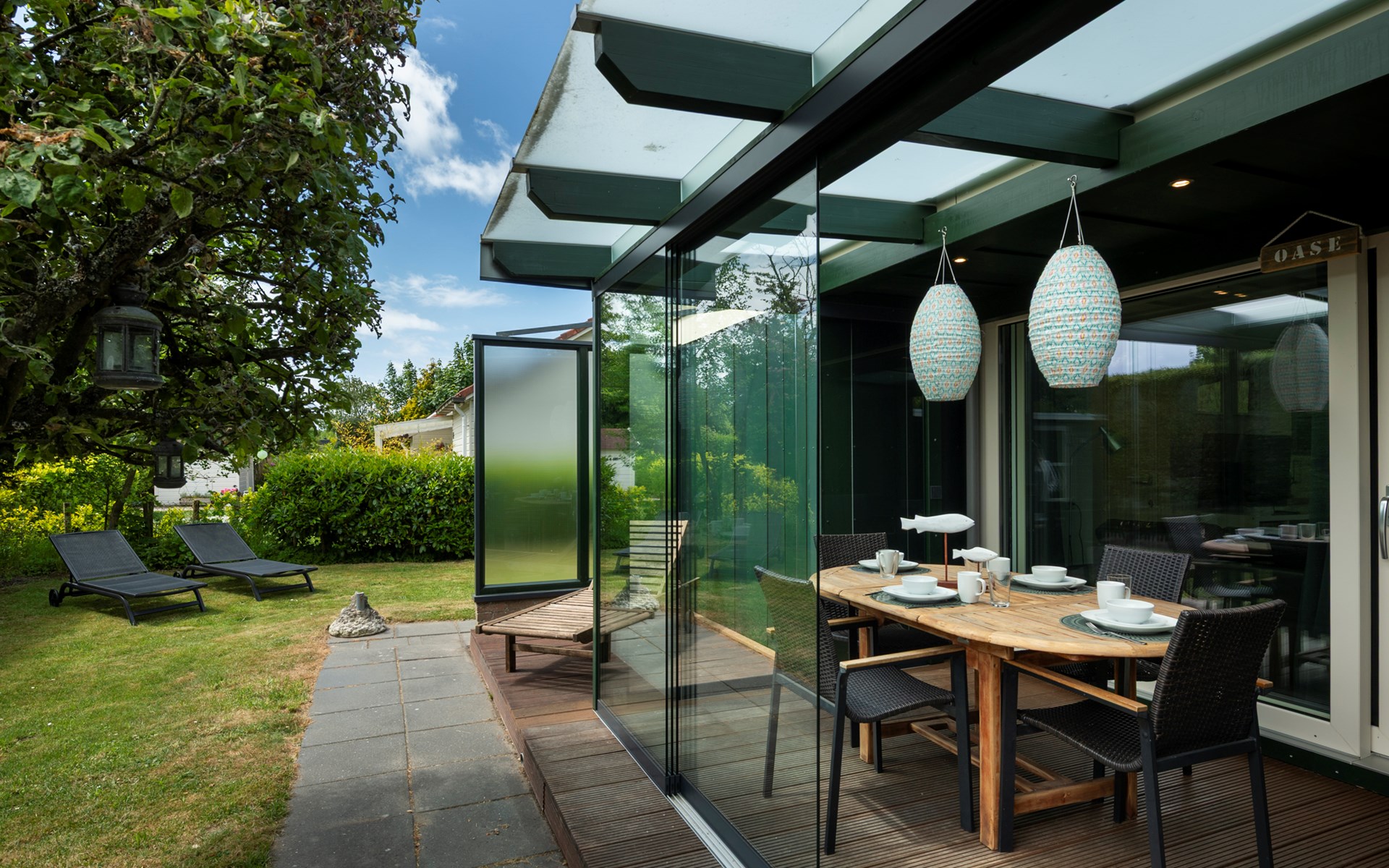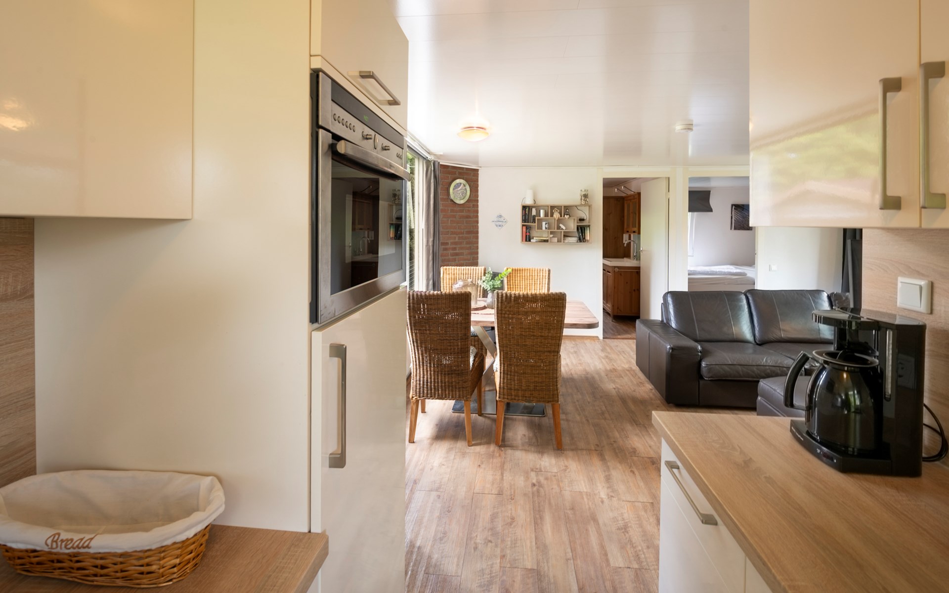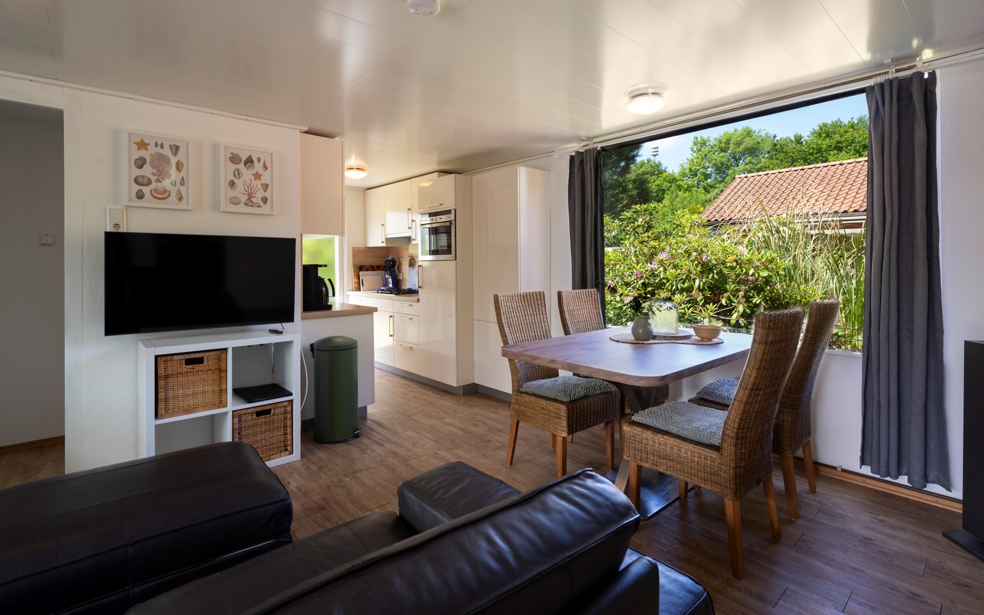 A cosy holiday home which sleeps 5. The open kitchen is fully equipped. In summer, you can open the kitchen door while cooking and make a delicious meal which can be enjoyed on the partly covered terrace. Enjoy cosy dining together in the garden and relaxing. Since the terrace are fitted with glass sliding doors at the beginning of 2025, you can also enjoy "outdoor" living in spring and autumn. Especially when the sun is shining, this conservatory quickly becomes a pleasant place to relax.