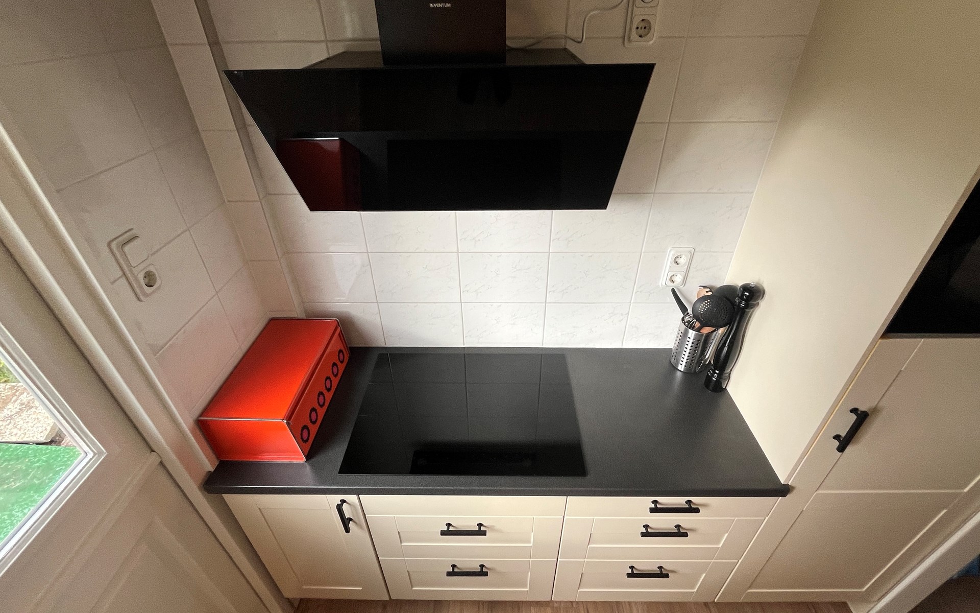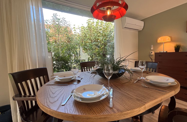 The cosy living room with open-plan kitchen includes a flat-screen TV with a wide range of channels. There are two bedrooms on the ground floor and one on the first floor. The comfortable box-spring beds are 2.10 metres long. Air conditioning is available both upstairs and downstairs. The house offers a modern shower and a separate toilet.