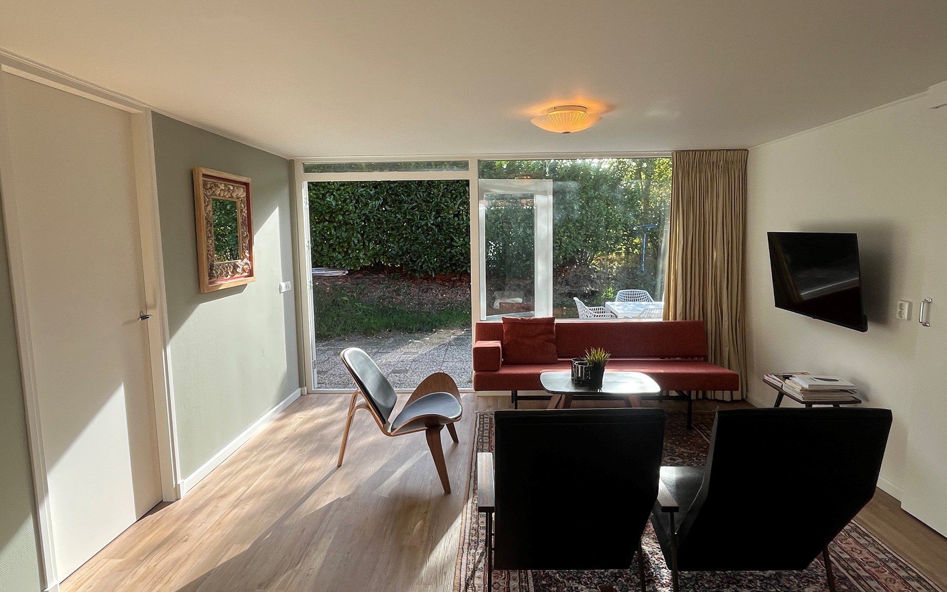 Between dunes, sea and salty air you’ll find Kaatje Mossel. A charming red Swedish-style house located at ’t Ongerepte 21 in Renesse. Here you can stay with up to six guests, within walking distance of the beach, right in one of the most beautiful areas of Zeeland. The house combines retro charm with modern comfort, featuring a stylish 1960s design interior.