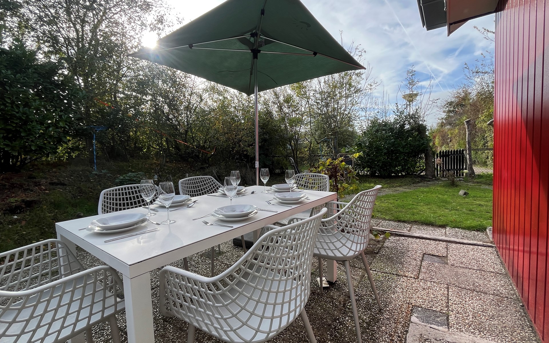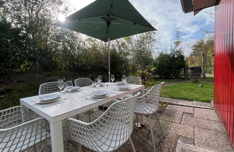 Outside, you can enjoy a sunny garden, a covered terrace, and for wellness lovers, a barrel sauna with outdoor shower. An electric car can easily be charged at the house, and there are three private parking spaces. Directly next to the garden is a small play area, perfect for hours of fun with games such as Jeux de Boules, Kubb, beach ball and football.
