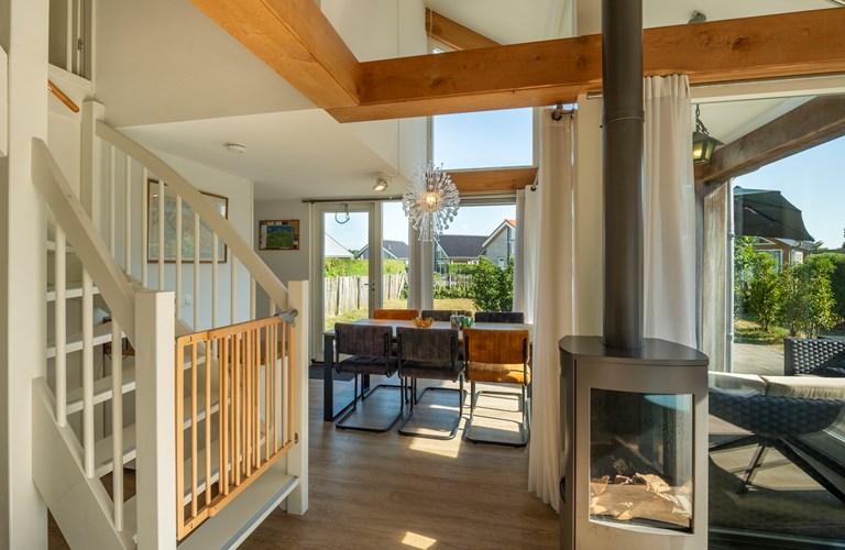 Directly behind the dunes, you’ll find the modern holiday home Solskin, located in holiday park Zonnedorp. Thanks to its unique location, you can easily walk to the beach and the sea to enjoy a wonderful beach holiday during sunny summer days. The center of Renesse, with its various restaurants and shops, is also nearby.