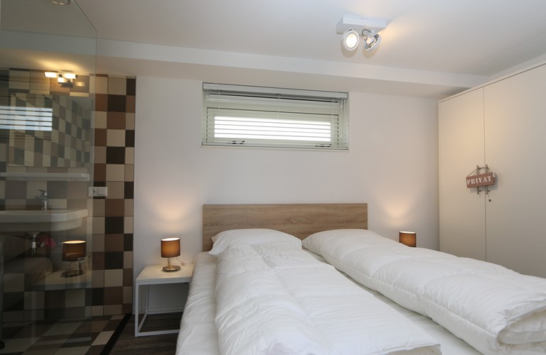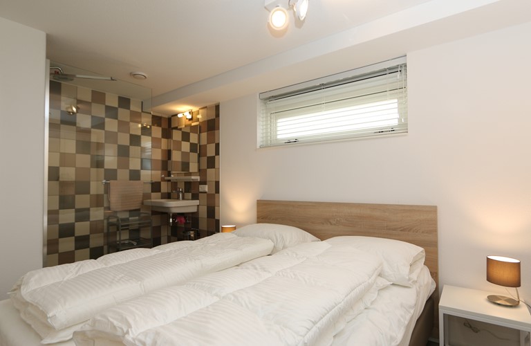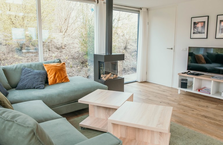 The modern house has a bright, open living room due to the large windows, an adjacent dining area and fully-equipped, open kitchen. During the colder days, you can enjoy the heat of the fireplace or read a good book. The ground floor is provided with a bedroom with bathroom en suite and separate toilet. The first floor has two bedrooms, a bathroom and a separate toilet.