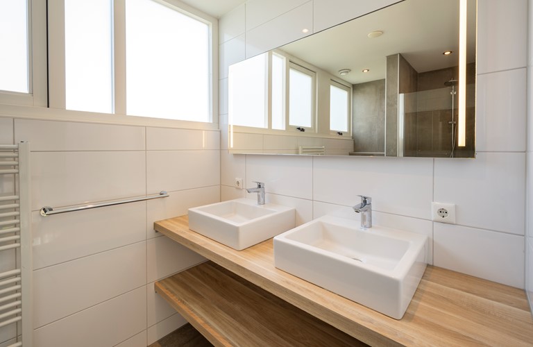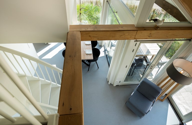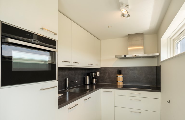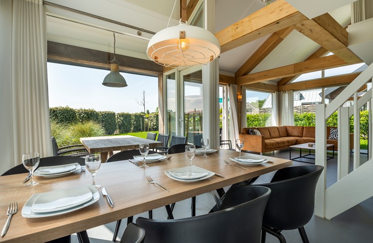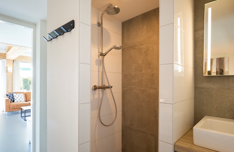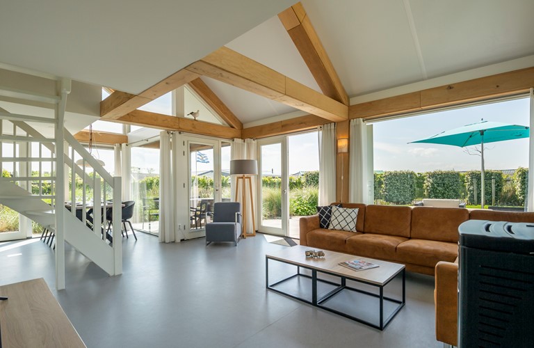 The modern and luxury house is fully-equipped and has a bright living room with a nice seating corner and a cosy fireplace. The open kitchen can be found adjacent to the living and dining area. The house has three bedrooms of which one on the ground floor. Furthermore, two bathrooms with shower and separate toilets are present.