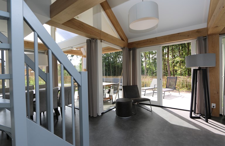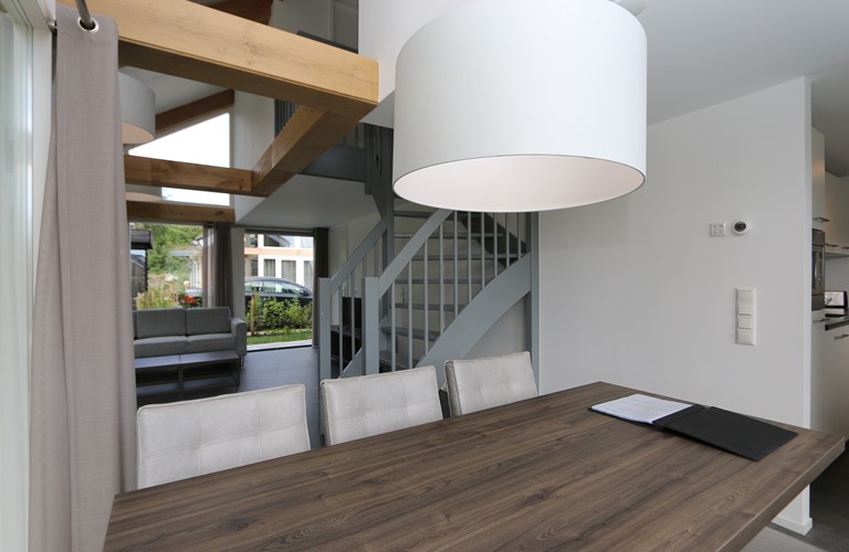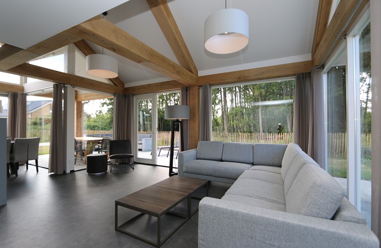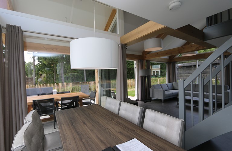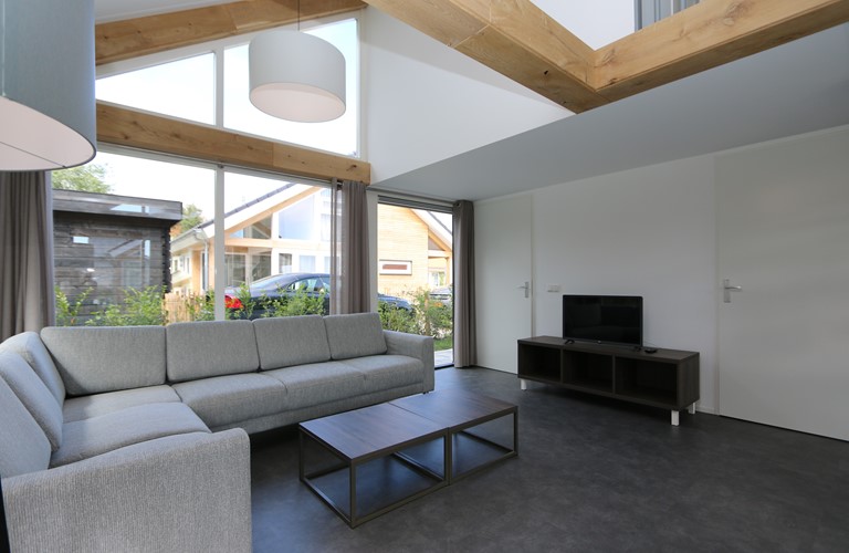 The modern, detached house is stylishly decorated and has a bright living room with a cosy seating corner. The fully-equipped, open kitchen can be found adjacent to the living room and dining area. There are three bedrooms present in the house, of which one on the ground floor. Moreover, two bathrooms with shower and separate toilets are present.