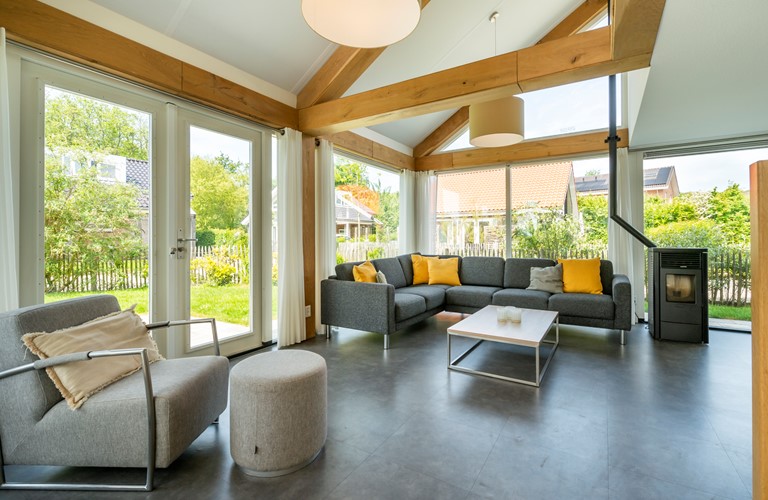 The bright house is fully equipped and has a living room with a seating corner, adjacent dining area and open kitchen. The winter months are also pleasant due to the warmth and cosiness of the pellet stove. You’ll find a bedroom with a bathroom en suite and separate toilet on the ground floor. The first floor has two bedrooms, bathroom with shower and separate toilet.