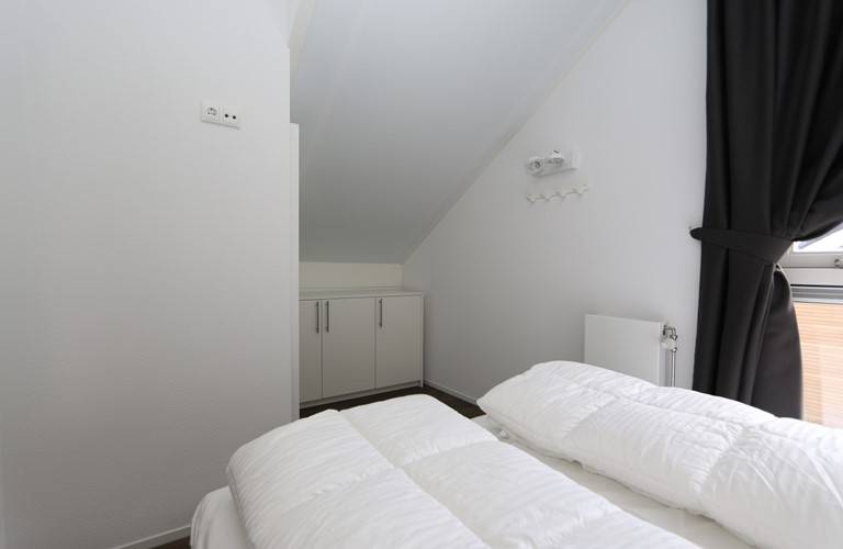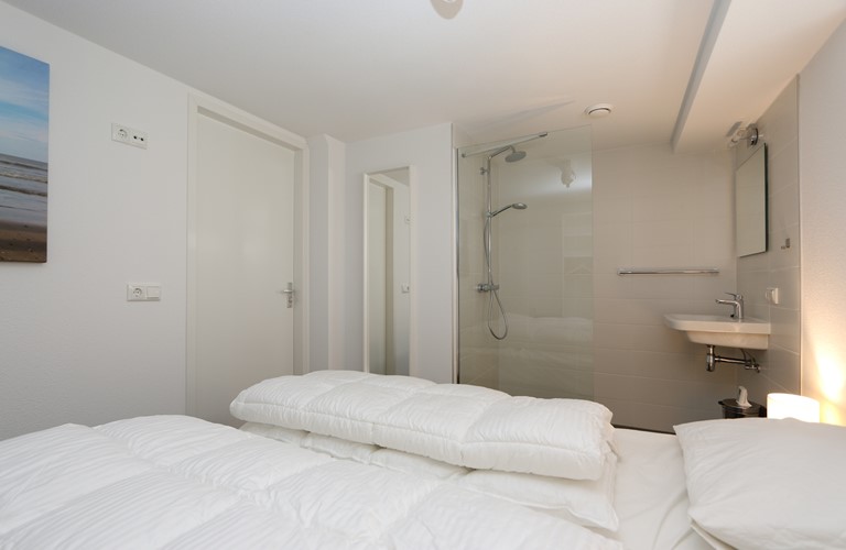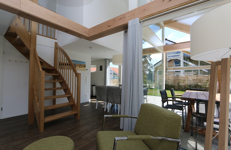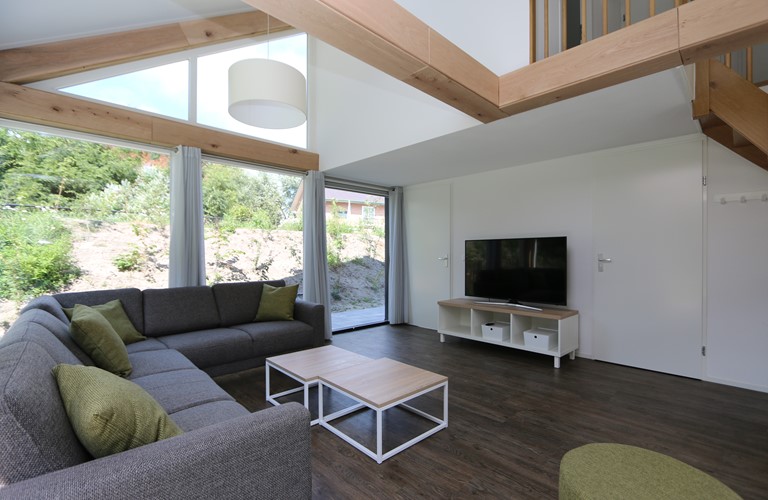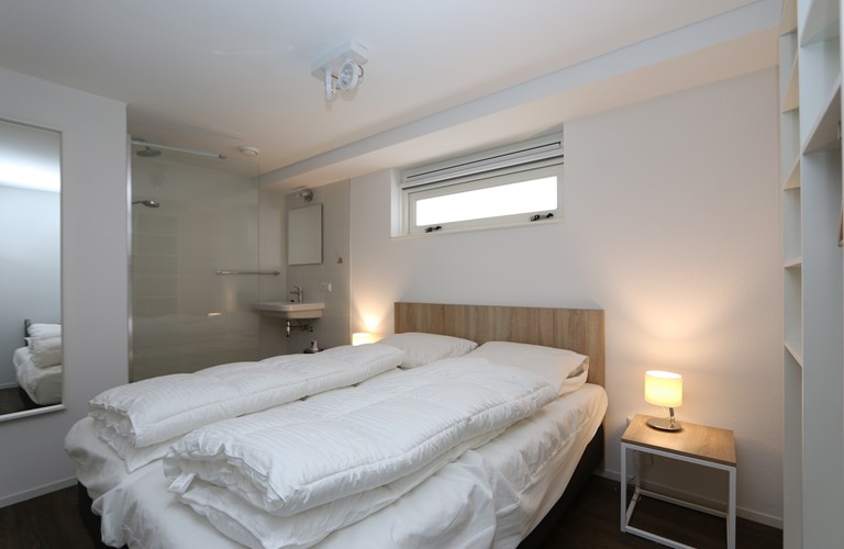 This modern house is atmospherically and comfortably decorated with a seating corner, adjacent dining area and fully-equipped, open kitchen. The large amount of light and glass brings you a lovely outdoor feeling. From the house you can easily access the garden. On the ground floor, you’ll find a bedroom, bathroom with shower and a separate toilet. The first floor has two bedrooms, an extra bathroom and separate toilet.