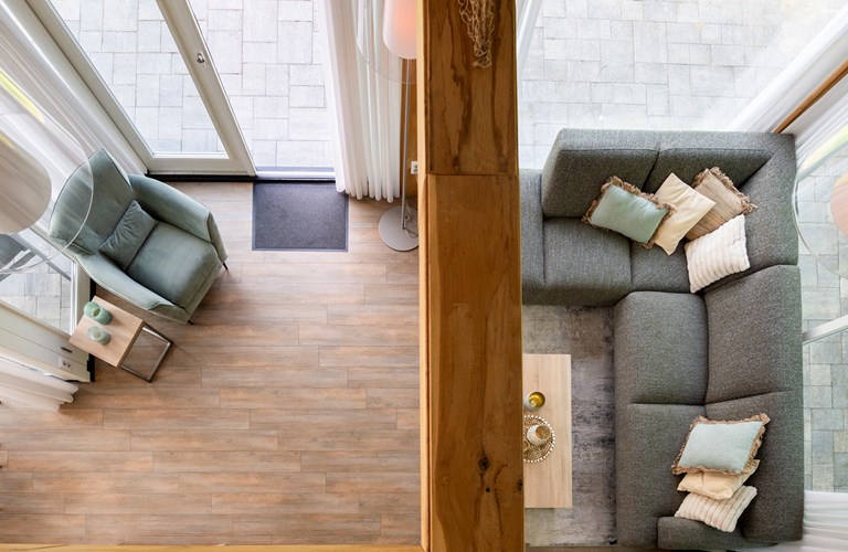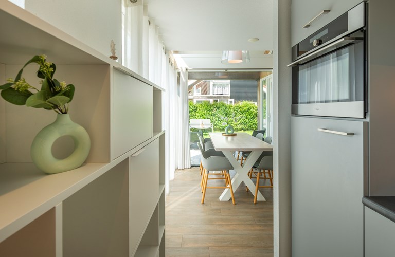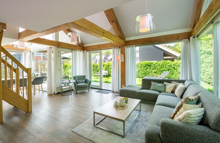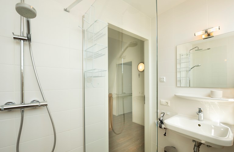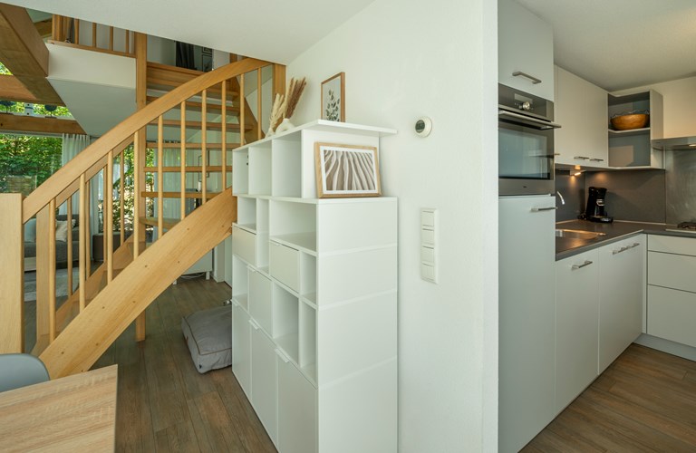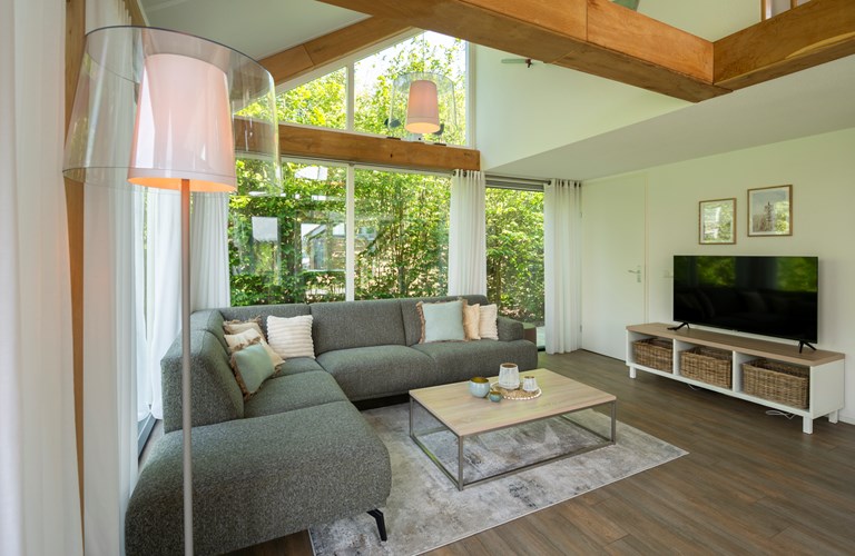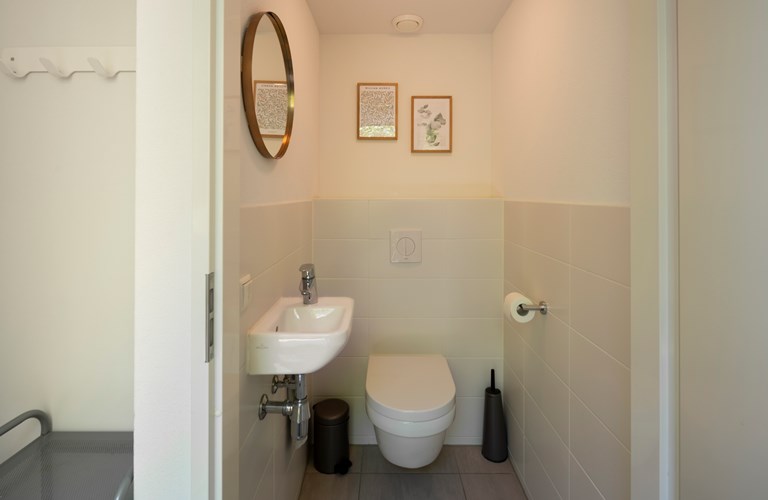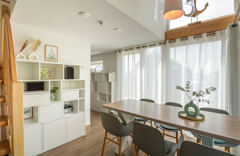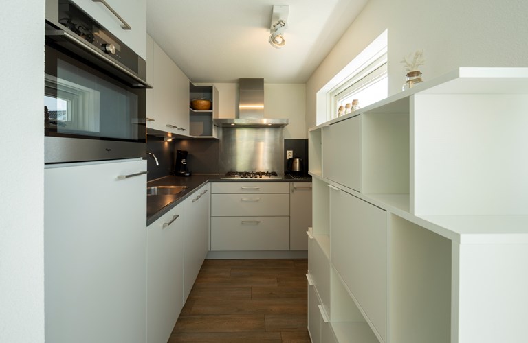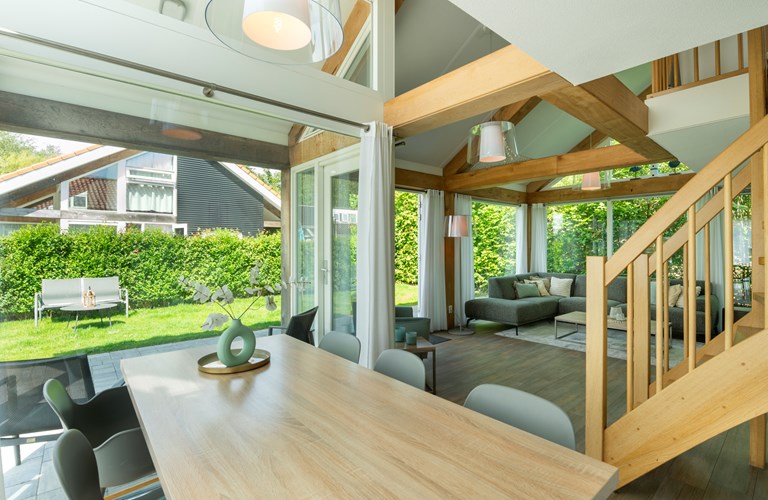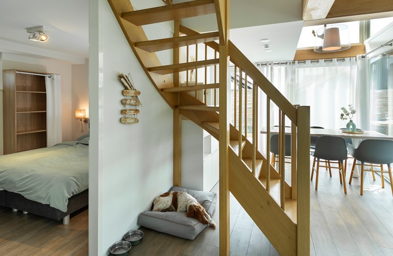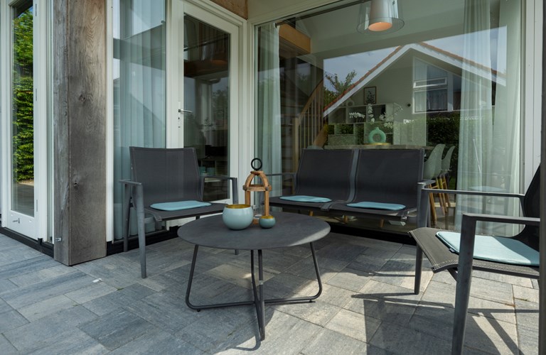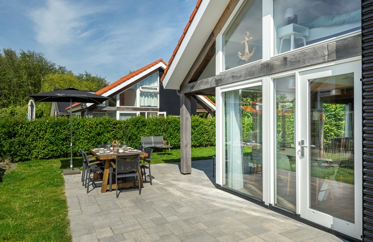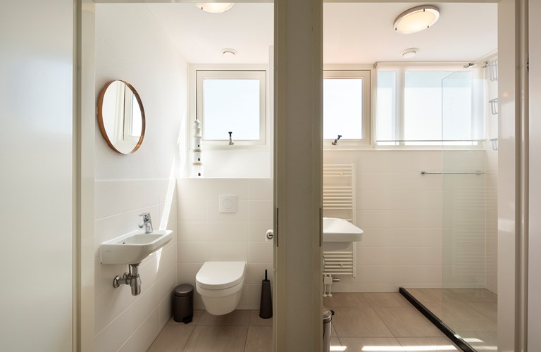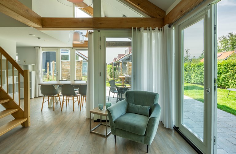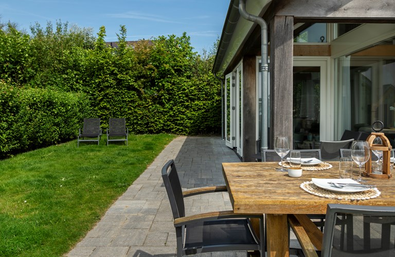 This modern house has a stylish and modern interior and has a bright living room due to the large amount of glass, with a cosy seating corner. The fully-equipped, open kitchen can be found adjacent to the living room and dining area. There are three bedrooms present of which one, with bathroom en suite, can be found on the ground floor. In all three bedrooms, the mattresses were replaced with new ones in October 2025. The first floor has an extra bathroom and separate toilet.