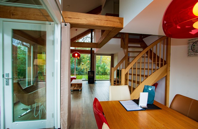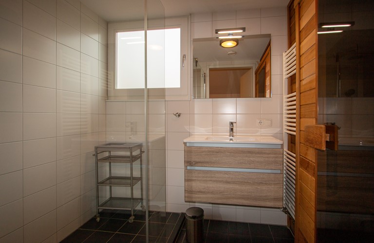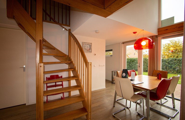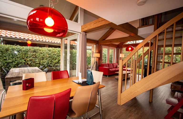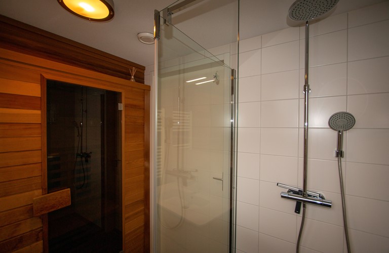 The modern living room is stylish and colourful and has an atmospheric woodburner, large windows and sliding doors to the terrace. The dining area can be found adjacent to the fully-equipped kitchen. You can find three bedrooms in the house. For ultimate comfort, the bedroom on the ground floor is equipped with extra-long mattresses measuring 210 cm. Furthermore, two luxurious bathrooms, an infrared sauna and separate toilets are present. A stairgate, high chair and babyset are also present in the house. The stairs to the first floor are equipped with anti-slip strips.