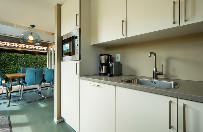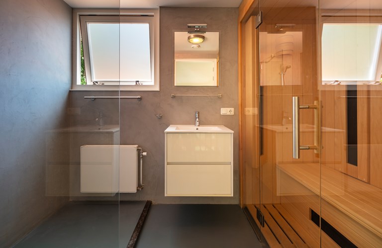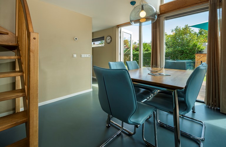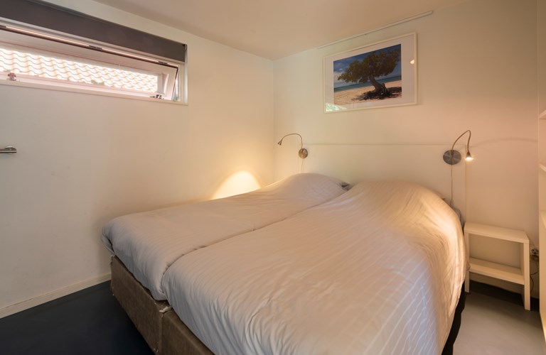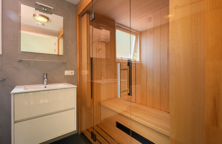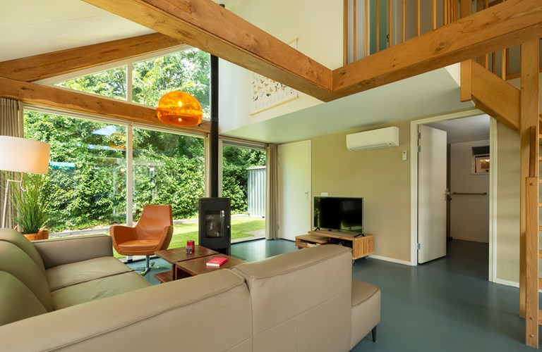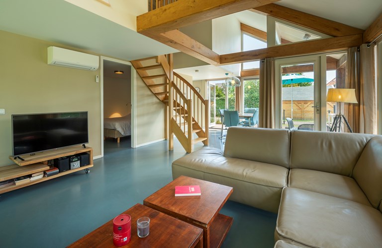 The villa features a stylish living room, perfectly suited to the delightful beach lifestyle, equipped with a cozy wood-burning stove and a television with a wide range of channels. The dining area is directly adjacent to the fully equipped kitchen. On the ground floor, you will find a bedroom with box spring beds and a modern bathroom. On the first floor, there are two additional bedrooms, a second bathroom, and a spacious sauna. The living room and the bedrooms upstairs are fitted with air conditioning that can both cool and heat, unique within the park, as this holiday home is the only property with this luxury feature.