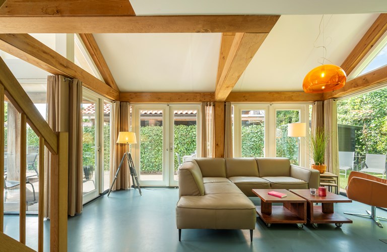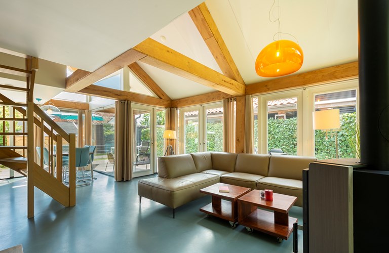 The garden is fully enclosed so that children and dogs can play here in a carefree way while you can just relax and unwind. The roofed terrace allows you to also sit outdoors when the weather is less beautiful. The garden is a lovely spot to share meals together and enjoy long summer nights. In- and outdoors are combined in a very nice and memorable way.