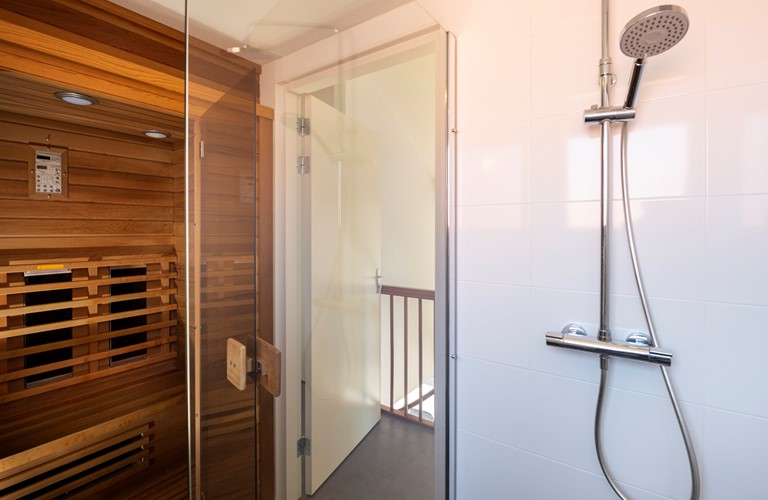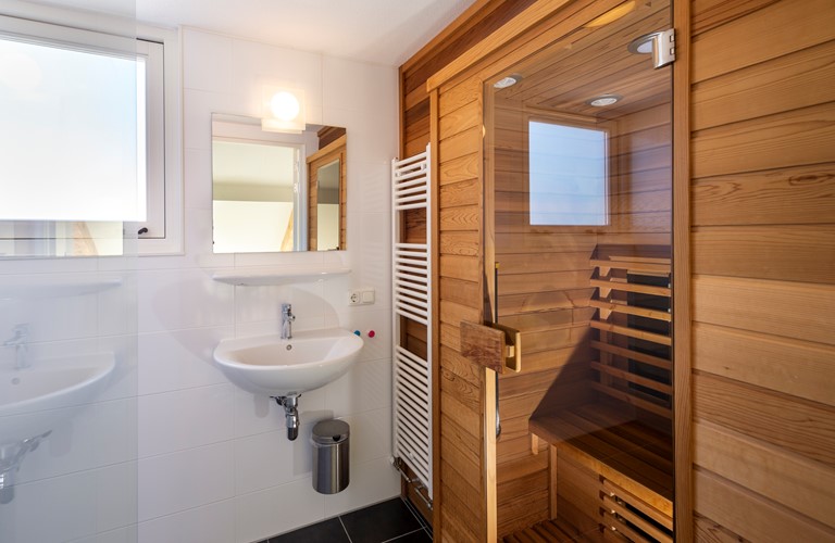 The house has a stylish, bright and modern living room with floor heating and a television with various channels. The dining area can be found adjacent to the fully equipped kitchen. Furthermore, you can find a bedroom with boxspring beds and modern bathroom on the ground floor. On the first floor, two bedrooms, a bathroom and large sauna can be found. Two separate toilets are present in the house.
