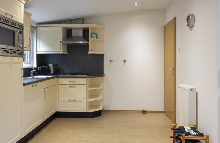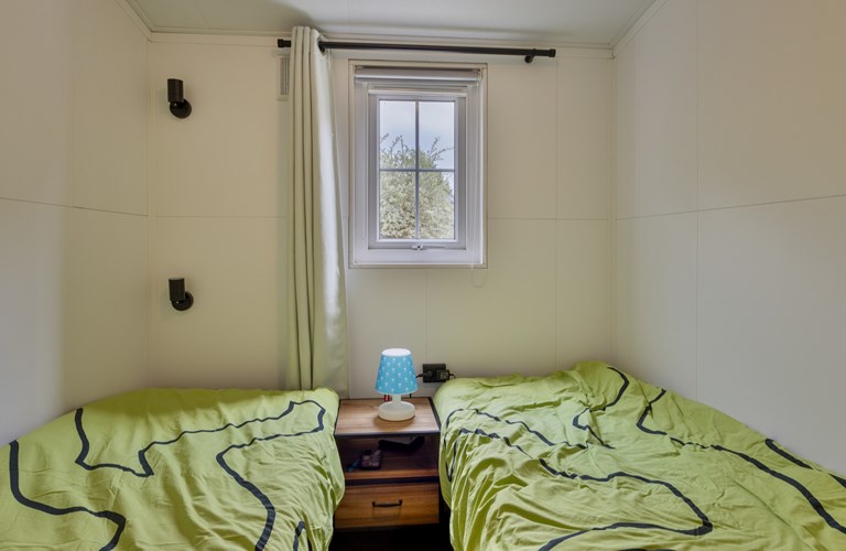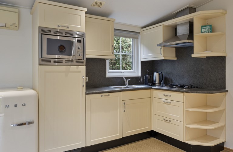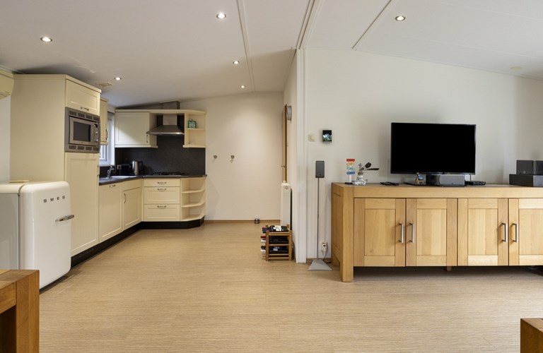 The chalet "De Zilvermeeuw 21" is located at the edge of the holiday park. Inside, you can relax in the cozy sitting area. The open kitchen is fully equipped with all modern conveniences, and during warm summer days, the air conditioning ensures a cool living room. There are two bedrooms: the master bedroom has a double bed, and the second bedroom has two single beds.