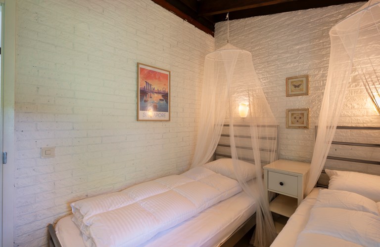 Goede bedden en genoeg bergruimte, alleen zouden horren voor de ramen een uitkomst zijn.
