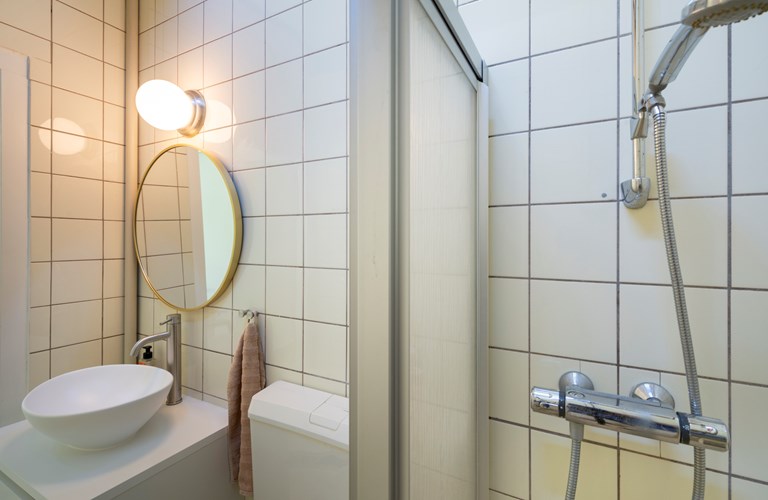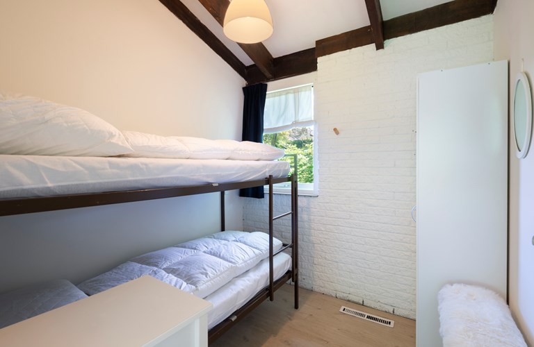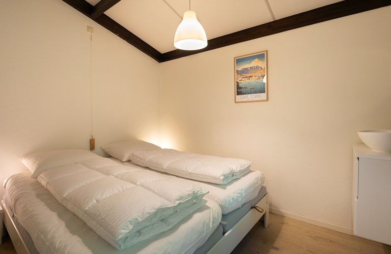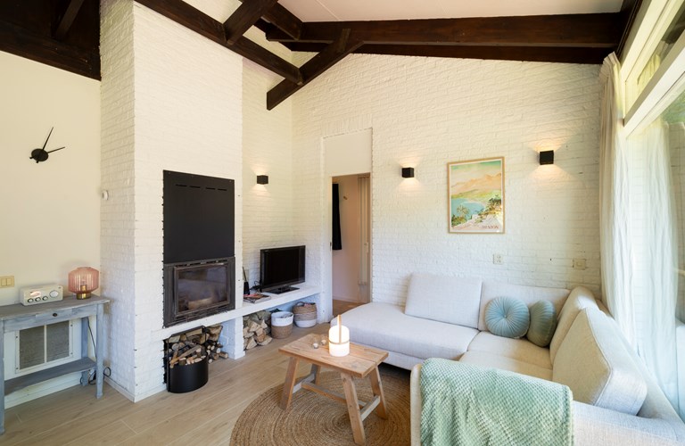 The spacious living room has a comfortable sitting and dining area where you can enjoy a meal together or spend a relaxing evening with a book in hand. Even in the cooler months, you will be cozy when you light the charming fireplace. The TV is equipped with Google TV and Netflix. There are no regular TV channels available, but it is possible to stream from your phone so you can still watch whatever you want. The fully equipped kitchen features modern appliances and offers plenty of space to prepare a delicious dinner. There are 3 bedrooms, one of which has a bunk bed. Naturally, there is also a nice bathroom with a shower.