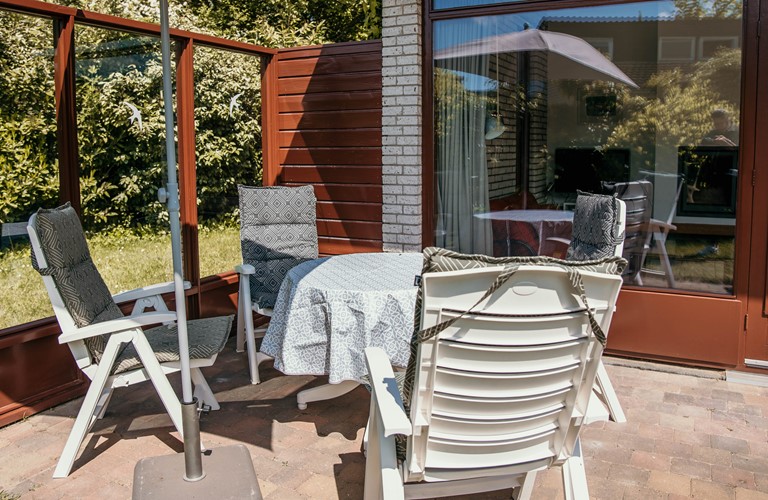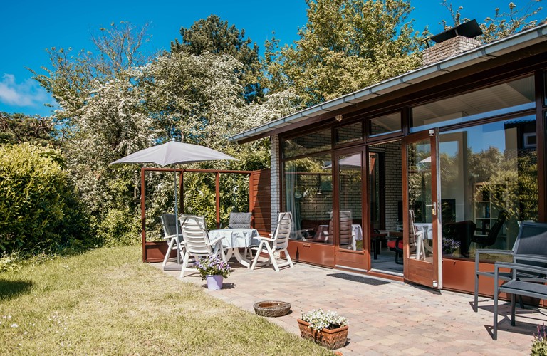This holiday bungalow has a cosy living room which borders at the spacious and open kitchen. From the living room you can walk on to the terrace where you can drink a cup of coffee or eat breakfast in the morning. The terrace is located on the southside of the bungalow so you will be able to enjoy the sun the whole day through. There are three bedrooms and a modern bathroom with double sinks, a bath and a walk-in shower. The master bedroom has its own toilet.