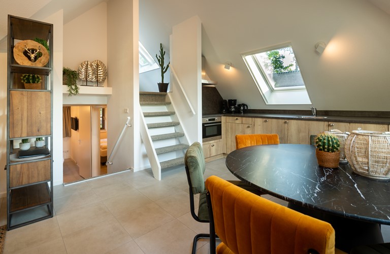 Het is een leuk huisje, split level. Dus minder geschikt voor mensen die slecht(er) ter been zijn.