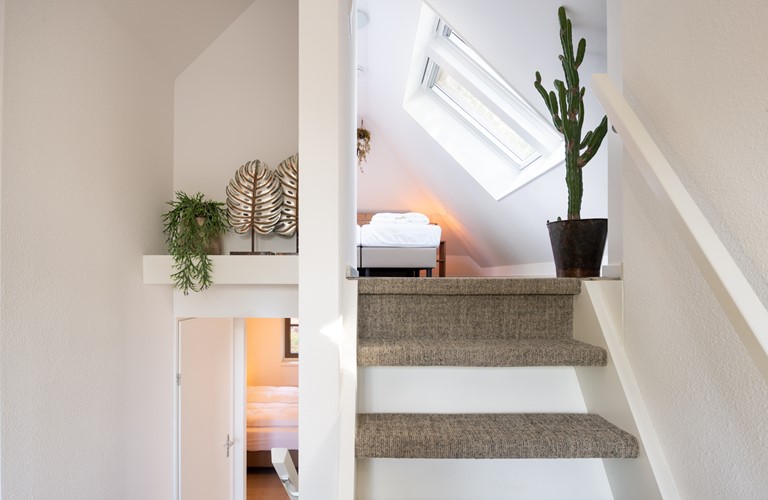 Houd er rekening mee dat de slaapkamer boven geen deur heeft, waardoor je geluid en licht vanuit de woonkamer kan horen en zien.
