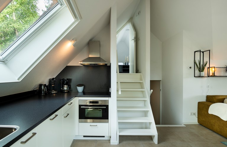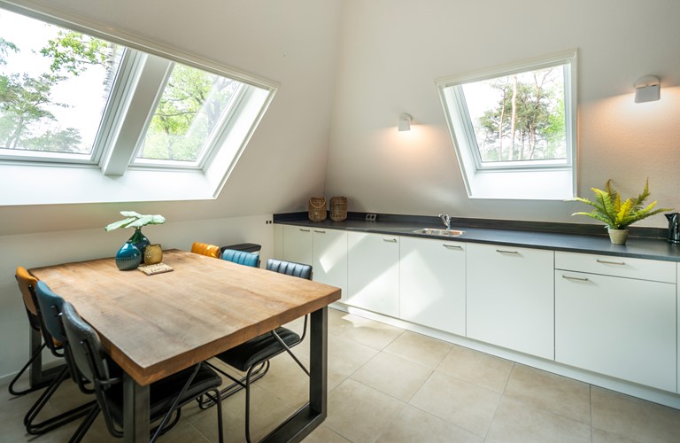 Herzstück ist das offene Wohn-Esszimmer mit offener Küche, hoher Decke, viel Licht. Das Haus ist umgeben von einem Garten mit Baumbestand, einer großen und kleinen Terrasse mit weitem Blick auf Felder (da Randlage). Die Lage ist sehr schön, sehr empfehlenswert der Besuch des Nationalparks De Hoge Veluwe, aber auch der Schovenhorst mit altem, eindrucksvollem Baumbestand insbesondere im Arboretum ist einen Besuch wert. Die Brasserie dort liegt schön, das Essen ist lecker. Radfahren, Wandern, Ausflug nach Arnhem - es gibt eine große Auswahl. Das nächste Mal werden wir dort reiten!