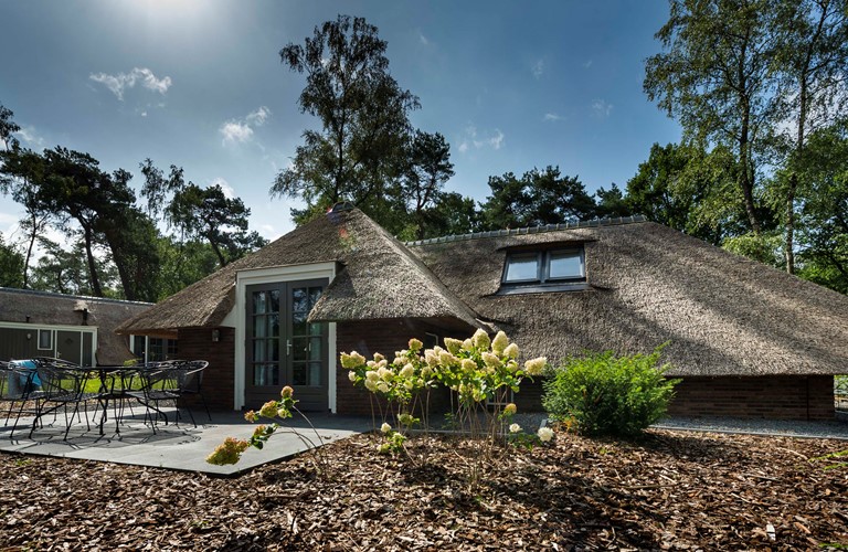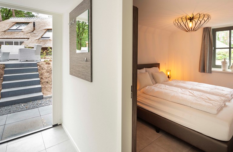 Heel leuk huisje met rieten dak. Je loopt via de achteruitgang zo het bos in, ideaal.